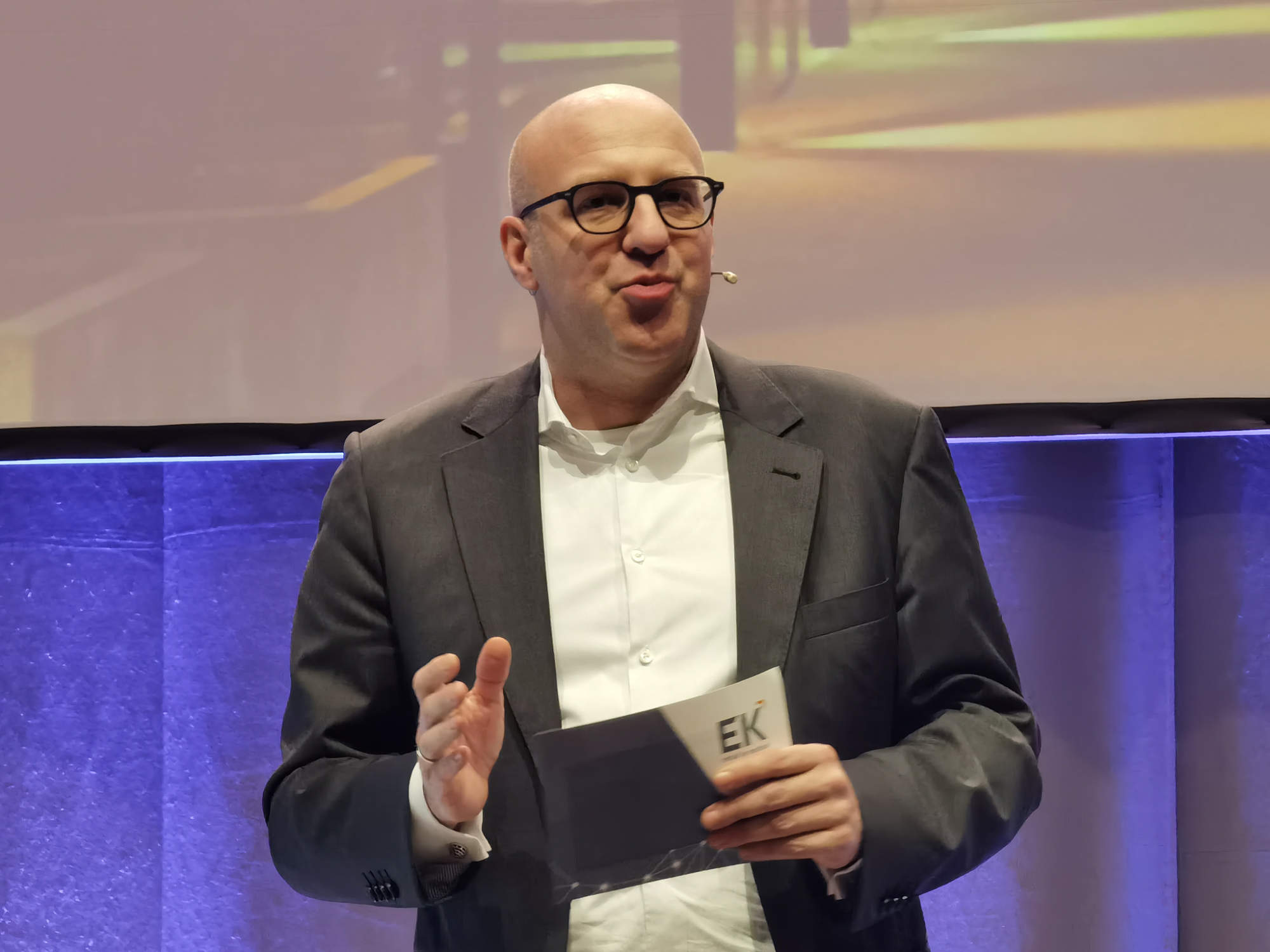 Martin Richrath, seit dem 1. Januar 2023 neuer CEO an der Spitze des Bielefelder Mehrbranchenverbundes EK Retail, anlässlich der Bekanntgabe der vorläufigen Geschäftszahlen für das Jahr 2022 im Rahmen der Messe EK LIVE. Foto: G. Wagner