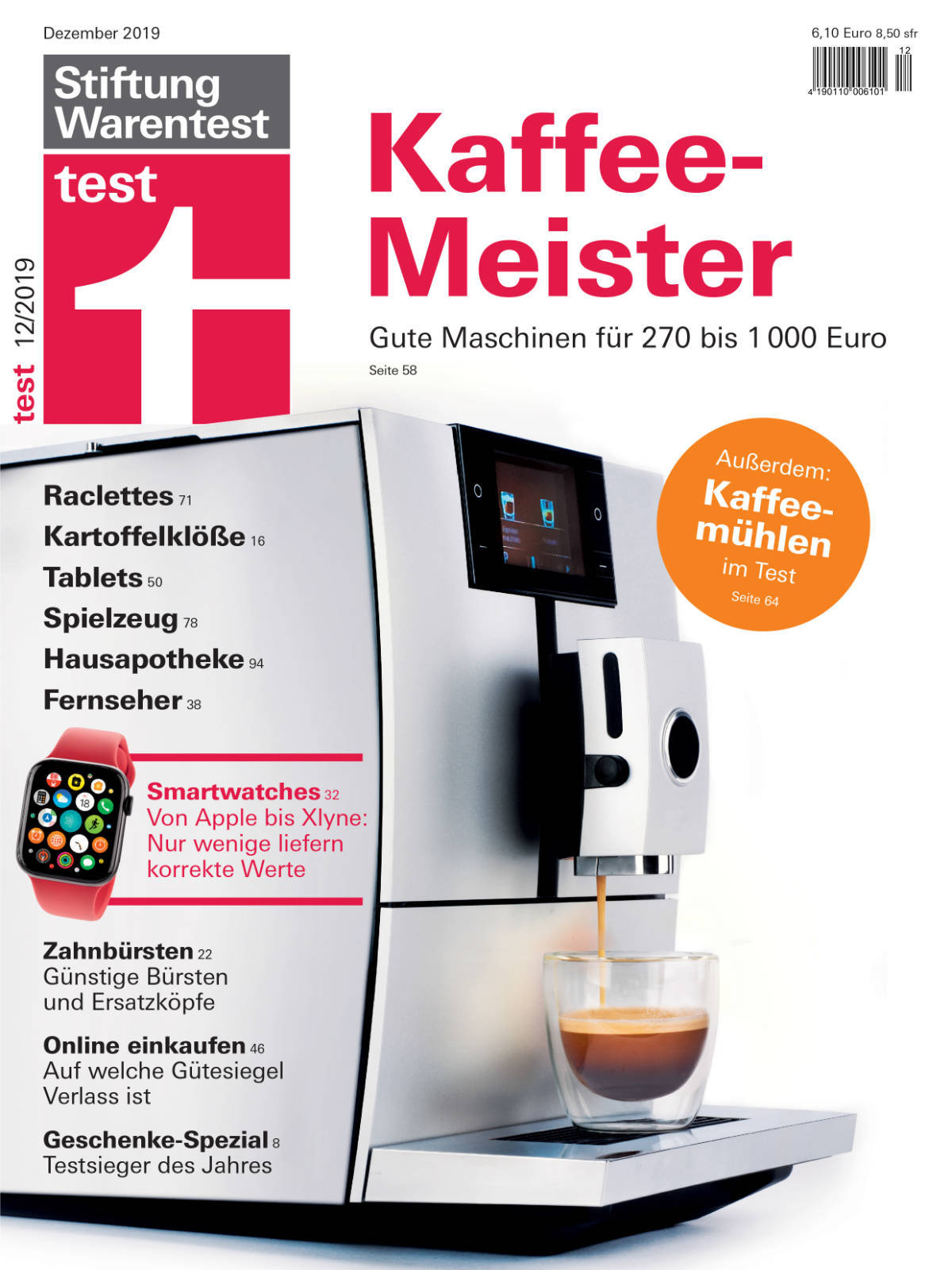 Nachzulesen sind die Tests über die Kaffeevollautomaten und Kaffeemühlen finden in der Dezember-Ausgabe der Zeitschrift „test“ oder online unter