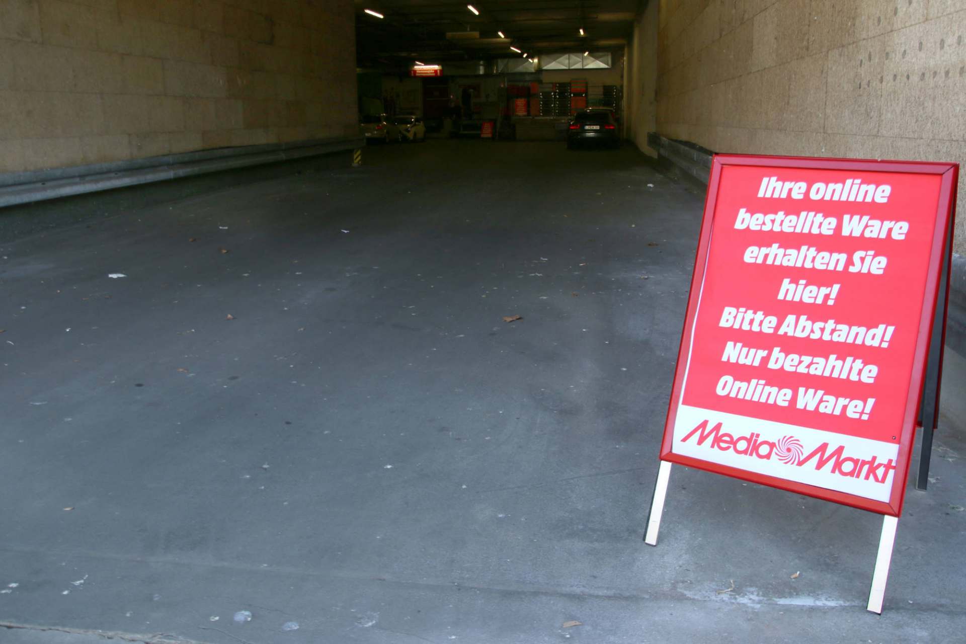 Online bestellte Waren können derweil – in krimireifer Kulisse – über die LKW-Einfahrt zur Warenannahme abgeholt werden. „Ihre online bestellte Ware erhalten Sie hier! Bitte Abstand! Nur bezahlte Online Ware!“ Vom Point of Emotion ist der in seinen Grundfesten erschütterte Handel nur wenige Tage, aber doch derzeit scheinbar Lichtjahre entfernt.