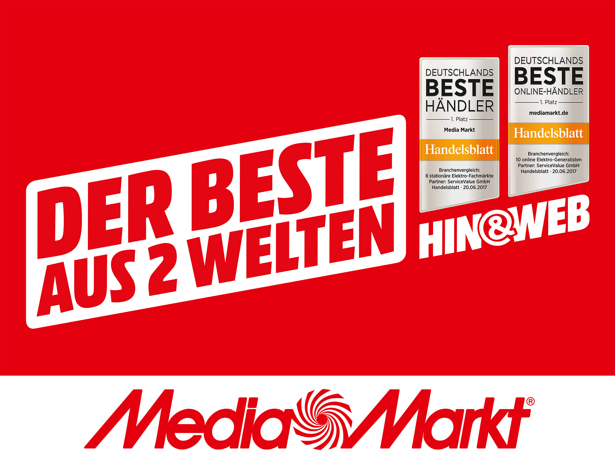 Höchste Kundenzufriedenheit sowohl im Markt als auch im Netz, das bestätigt eine Studie des Marktforschungsunternehmens ServiceValue im Auftrag des Handelsblatts. Nach der Studie wurde MediaMarkt sowohl mit seinen stationären Märkten als auch mit seinem Onlineshop als Deutschlands bester Elektrohändler ausgezeichnet. Im Rahmen einer Kampagne wird das nun gefeiert. Unter dem Motto „Der Beste aus 2 Welten“ werden den Kunden während eines knapp dreiwöchigen Aktionszeitraums tolle Angebote präsentiert (22. August bis 10. September).