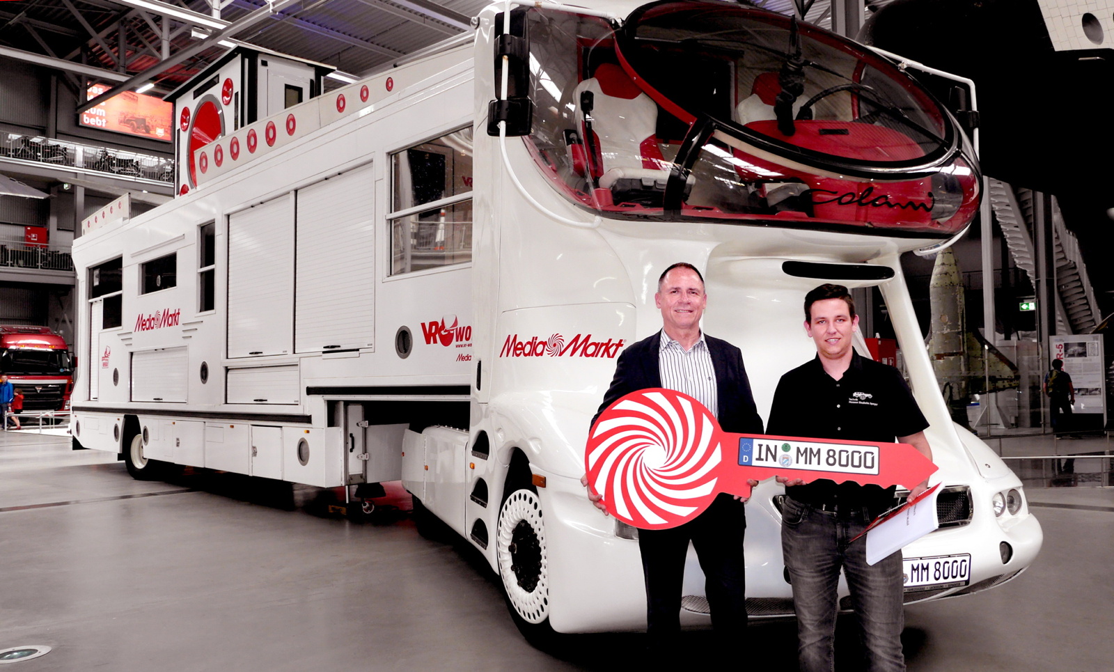 „Er ist fast 500.000 km quer durch ganz Deutschland gefahren. Nun ist es Zeit für den Ruhestand, und dabei hätten wir uns keinen besseren Ort als das Technik Museum Speyer wünschen können“, so Günter Grimm, Regionalmanager von MediaMarkt.