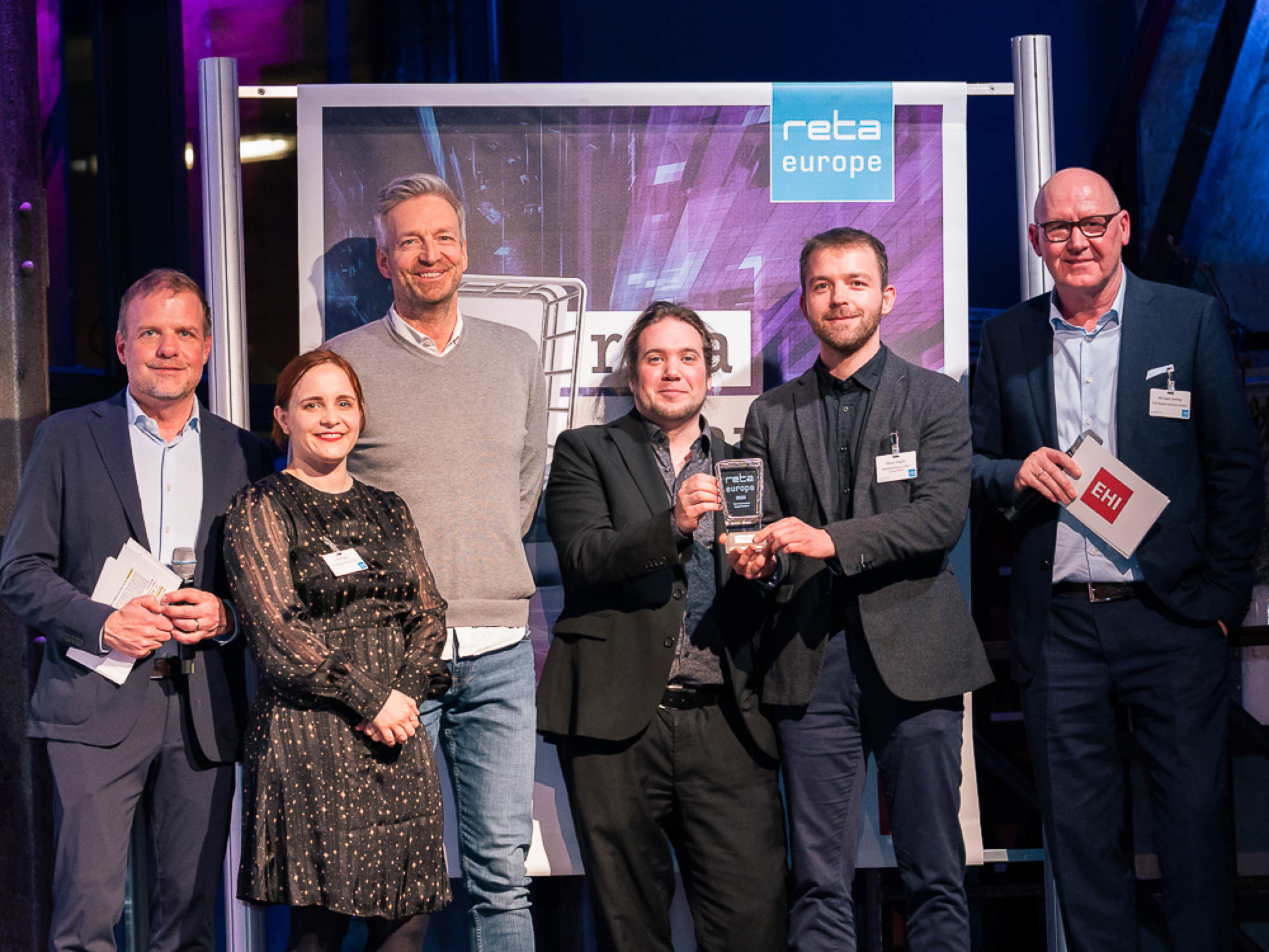 Gewinnen den reta Award (v.l.n.r.): Ulrich Spaan (Geschäftsleitung EHI), Imke Hahn (Projektleiterin Forschungsbereich IT, EHI), Robin Cumpl (Projektverantwortlicher „LaLiga“, MediaMarktSaturn), Daniel Kerner (Web-Entwickler, coma AG), Mario Ziegler (Manager Pilotprojekt „LaLiga“, MediaMarktSaturn) und Michael Gerling (Geschäftsführer EHI). Foto: EHI