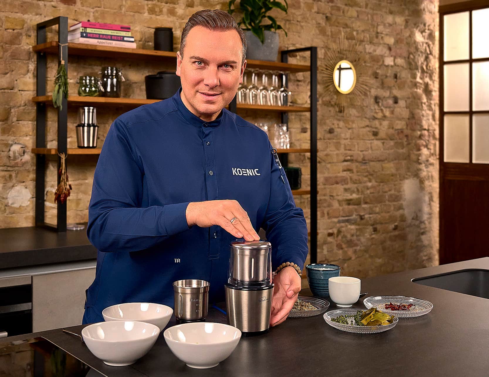 Frei nach dem Motto „Kochen wie der König mit Koenic” launcht MediaMarktSaturn mit Tim Raue zum Start drei Küchenprodukte einer insgesamt neunteiligen Serie: Einen 2in1 Hochleistungs-Häcksler, einen vielseitigen Vakuumierer, geeignet fürs Sous-Vide-Garen und eine Küchenwaage mit 10kg Tragkraft sowie Tara-Funktion.