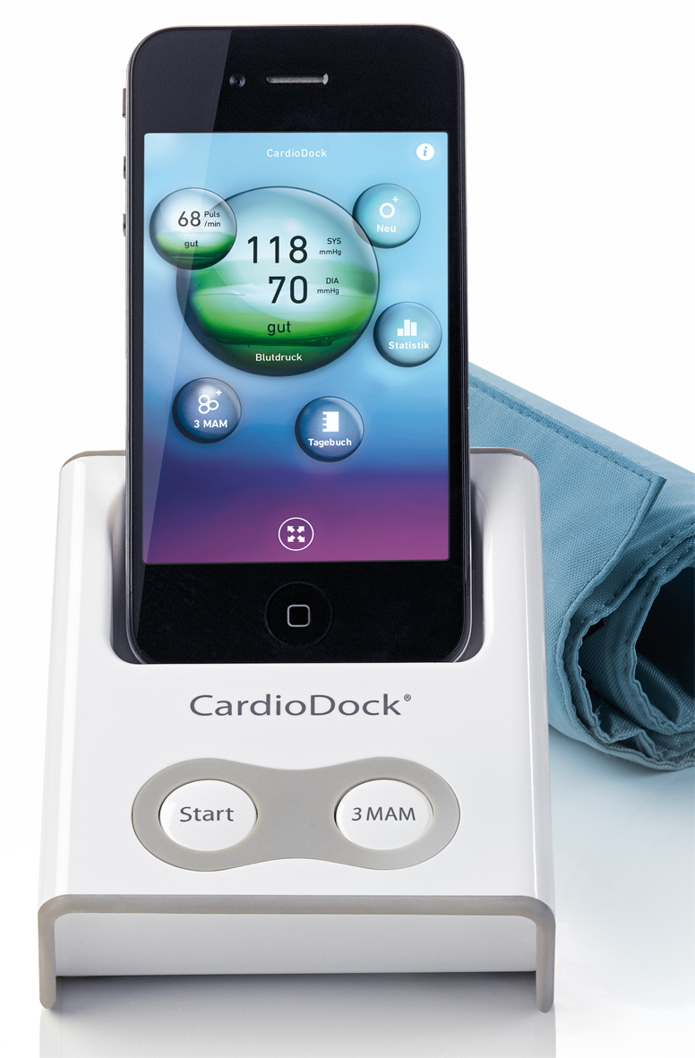 Das Medisana CardioDock Blutdruckmessgerät ist ein weiterer Schritt in Richtung „mobiles Gesundheitsmanagement“ aus der Produktserie VitaDock. Bei VitaDock® handelt es sich um Gesundheitsmessgeräte, die in Kombination mit einer zentralen App das Messen, Speichern, Auswerten, Überwachen und Versenden der wichtigsten Vitalwerte ermöglichen. Dabei werden iPhone, iPod touch und iPad in Kombination mit der kostenlos erhältlichen VitaDock App zum mobilen Gesundheitsmanager.