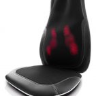 Zuschaltbar sind Rotlicht- und Wärmefunktion. Für Sicherheit sorgt die automatische Abschaltung nach 15 Minuten. Ein praktisches Klettband zur Fixierung der Massagesitzauflage an der Stuhllehne.