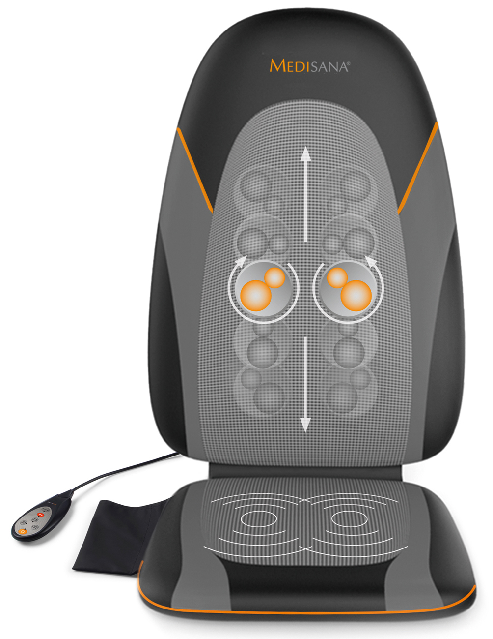 Bei der Medisana Shiatsu-Massagesitzauflage MC 830 sind drei Massagezonen wählbar: gesamter, oberer oder unterer Rücken. Für die zuschaltbare Vibrationsmassage in der Sitzfläche stehen drei Intensitäten zur Wahl. Außerdem ist eine Rotlicht- und Wärmefunktion zuschaltbar.