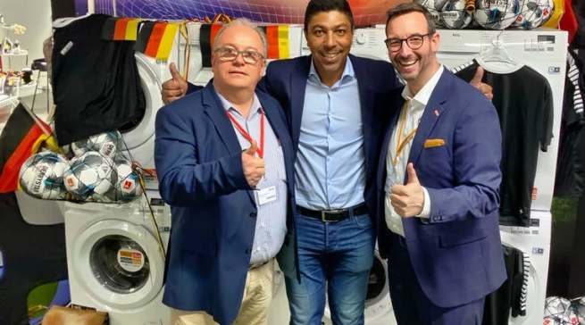 In den Messehallen an der Elpke herrschte eine prima Stimmung. Zwei Brasilianer sorgten für mächtig Auf- und Zulauf am Stand der AEG beim Torwandschießen auf Waschtrommeln: der eine, Giovane Elber, war Kultstürmer in Stuttgart und München, der andere machte als „weißer Brasilianer“ in Bielefeld und Frankfurt Karriere: Ansgar Brinkmann.