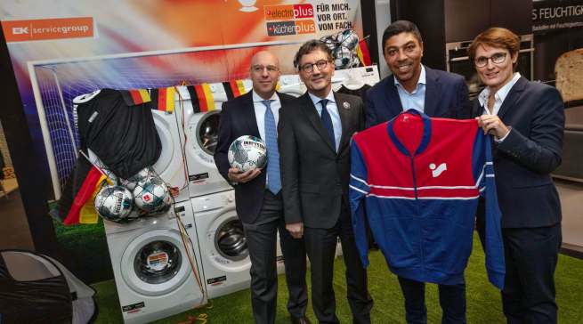 „Wir sind wandlungsfähiger denn je. Das ist heute eine Chance wie Notwendigkeit. Wir expandieren, wie man es von uns nicht erwartet hat“, begrüßte EK Vorstandsvorsitzender Franz-Josef Hasebrink im Rahmen eines Pressegespräches am Rande der Frühjahrsmesse „EK Live“, die auch eine ausgiebige Jubel-Feier zum 95. Geburtstag des Bielefelder Mehrbranchenverbundes war, die Medienvertreter. Gemünzt war dieser Satz auf den Coup, die Handelsaktivitäten im Sportbereich mit der „Intersport“-Lizenz für Großbritannien und Irland auszuweiten (Hasebrink: „Dieser Schritt über den Ärmelkanal ist eine weitere, wichtige Etappe auf unserem Weg zur europäischen Mittelstandsplattform.“), passt aber genauso auf das neue strategische Miteinander zwischen Bielefeld und Frechen.