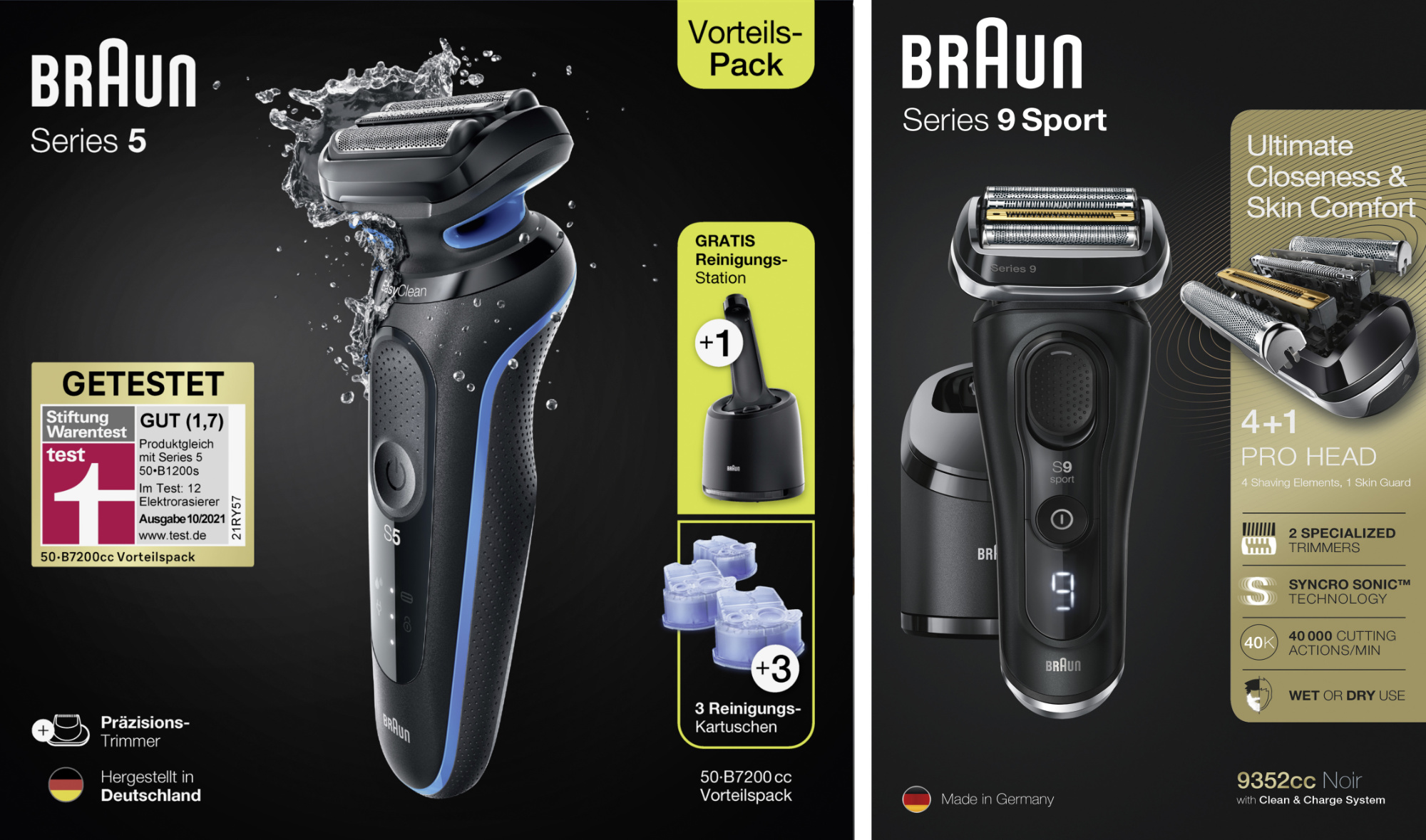 Vorteilspacks von Braun: Rasierer Series 5 und Series 9 Sport.