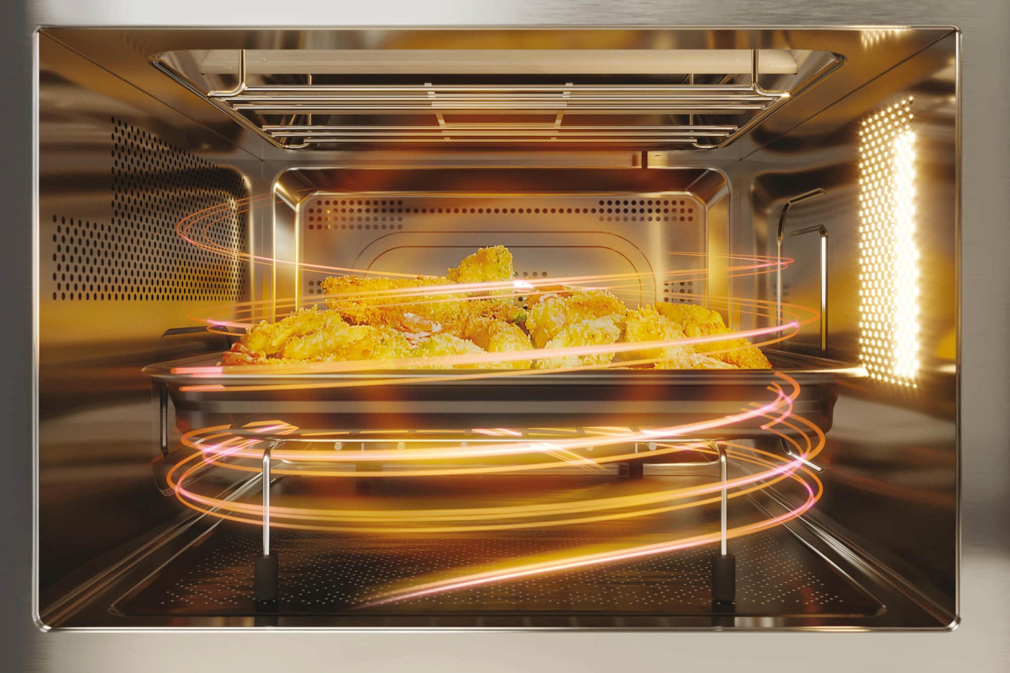 Statt eines Drehtellers sind die Geräte von Bauknecht mit einem flachen, über die gesamte Fläche integrierten Glasboden ausgestattet, der die Hitze gleichmäßig verteilt. Auf diese Weise bieten sie 30% mehr Platz – auch für eckige Auflaufformen oder mehreren Behältern gleichzeitig.