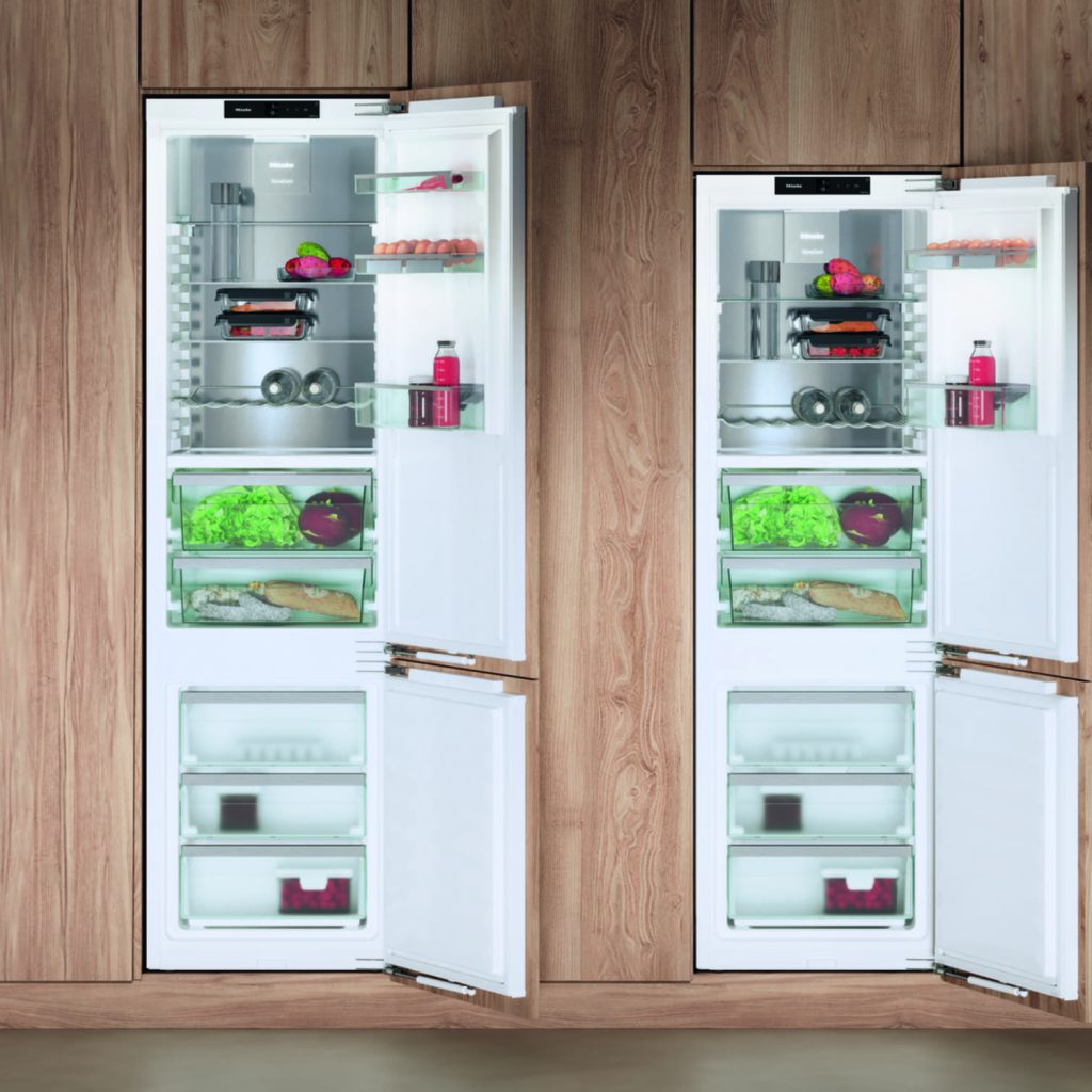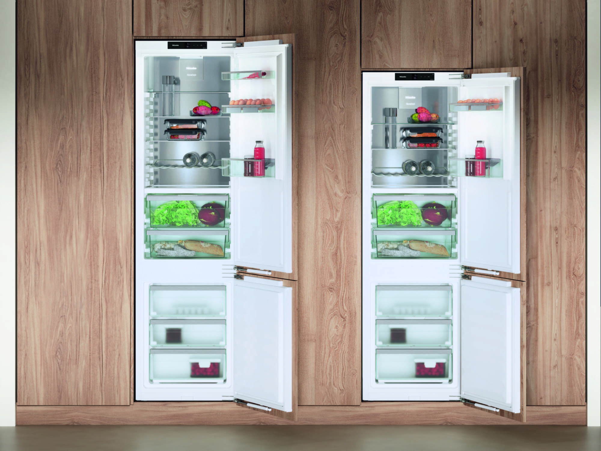 Mit der Kühl-Gefrier-Kombination KFN 7844 C erweitert Miele sein Einbaugeräte-Portfolio um ein Gerät mit einer Höhe von 194 Zentimetern. Diese sind für 60-Zentimeter-Nischen konzipiert und bieten damit eine Lösung für Haushalte mit wachsendem Platzbedarf bei begrenztem Einbauraum – etwa im Zuge familiärer Veränderungen oder steigender Vorratshaltung.