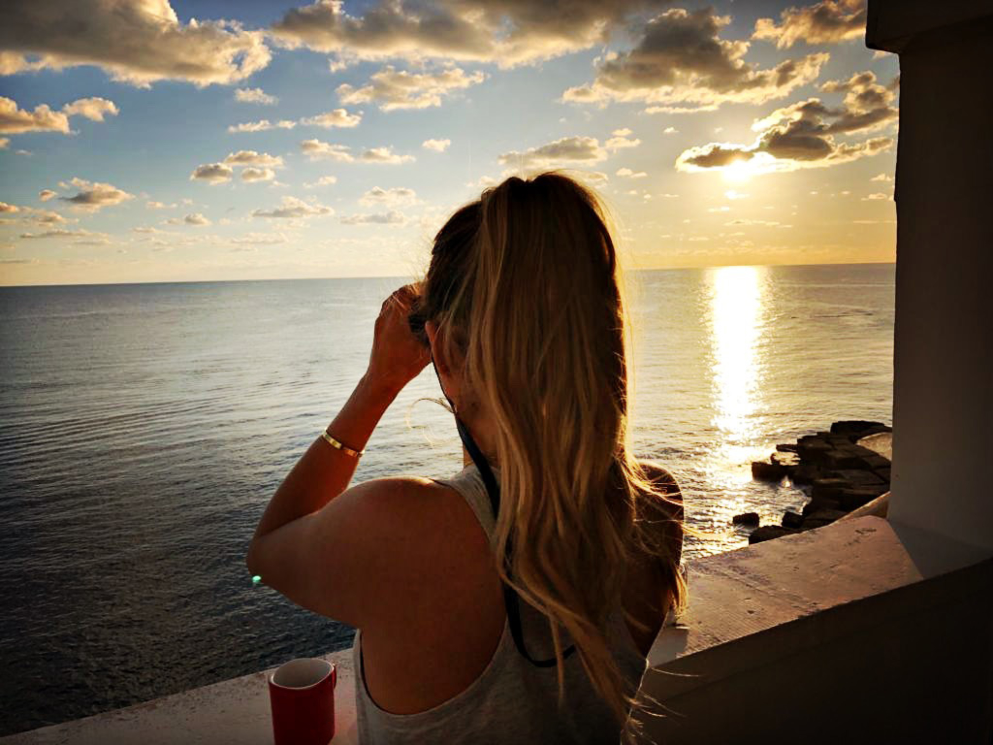 Der perfekte Kaffee-Moment: Mandy Gieseler in Monopoli mit Blick auf die Adria.