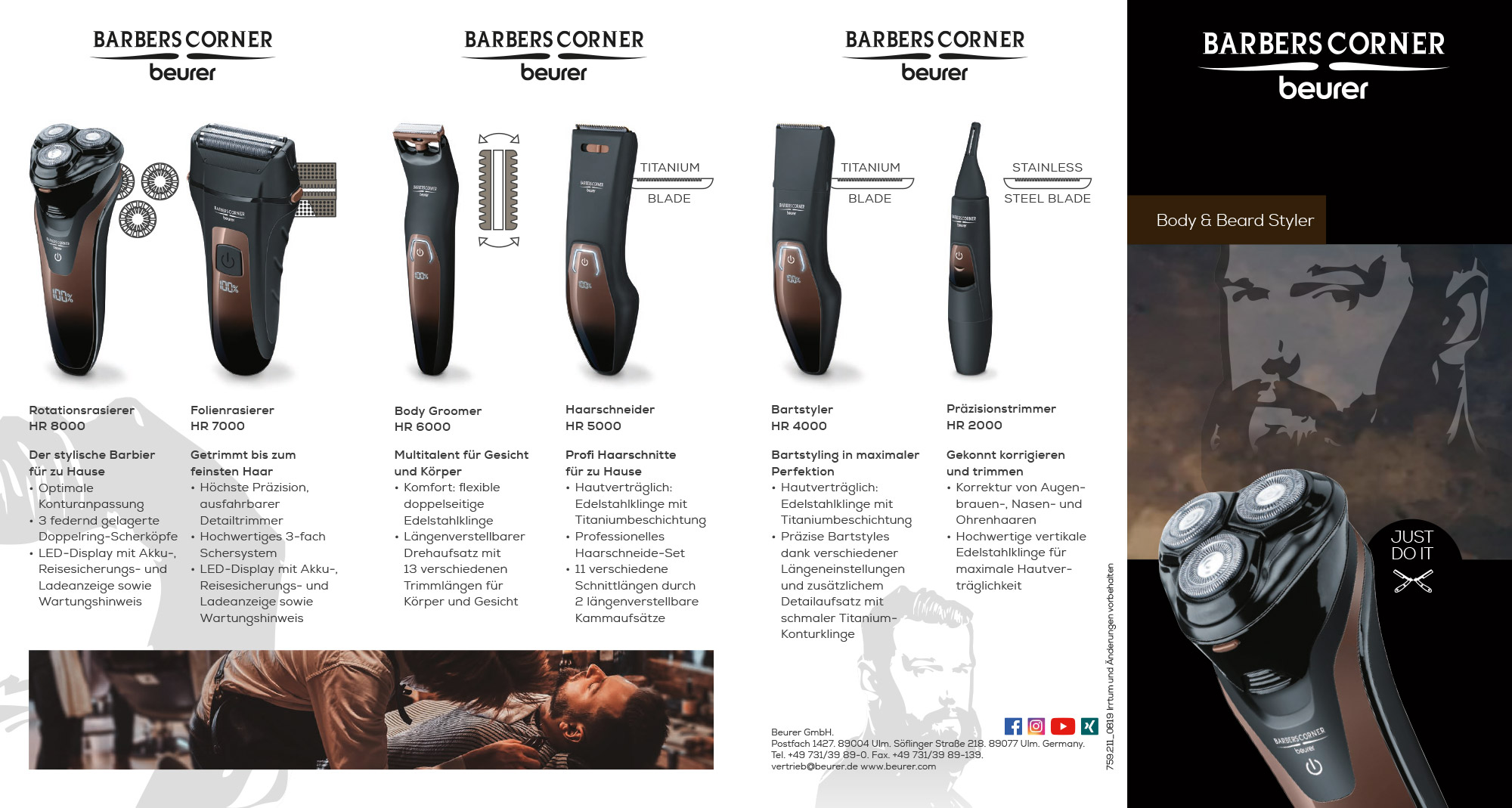 In Zukunft steht Beurer nicht nur für die Schönheitspflege der Damen, sondern überzeugt nun auch die Männerwelt mit sechs neuen Produkten für ein gepflegtes Äußeres. Die gesamte BarbersCorner Range, mit Ausnahme des batteriebetriebenen Präzisionstrimmers HR 2000, verfügt über ein LED-Display mit Reisesicherungs- und Ladeanzeige und ist sowohl im Akku- als auch im Netzbetrieb nutzbar. Die Akku-Geräte sind mit einer praktischen Schnelllade-Funktion ausgestattet, die sie innerhalb von nur fünf Minuten für eine komplette Anwendung einsatzbereit machen.
