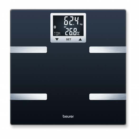 Dank der Tastenbedienung zur Benutzerverwaltung und manuellen Benutzerzuweisung ist die BF 720 in vollem Umfang auch ohne App nutzbar. Die Nutzer lassen sich ganz einfach am Produkt einstellen. Mit der Messung über die Elektroden und der Einberechnung von Konstanten bzw. individuellen Werten (Alter, Größe, Geschlecht, Aktivitätsgrad) über drei Sensorentasten, kann die BF 720 Diagnosewaage den Körperfettanteil und weitere Körperwerte bestimmen.