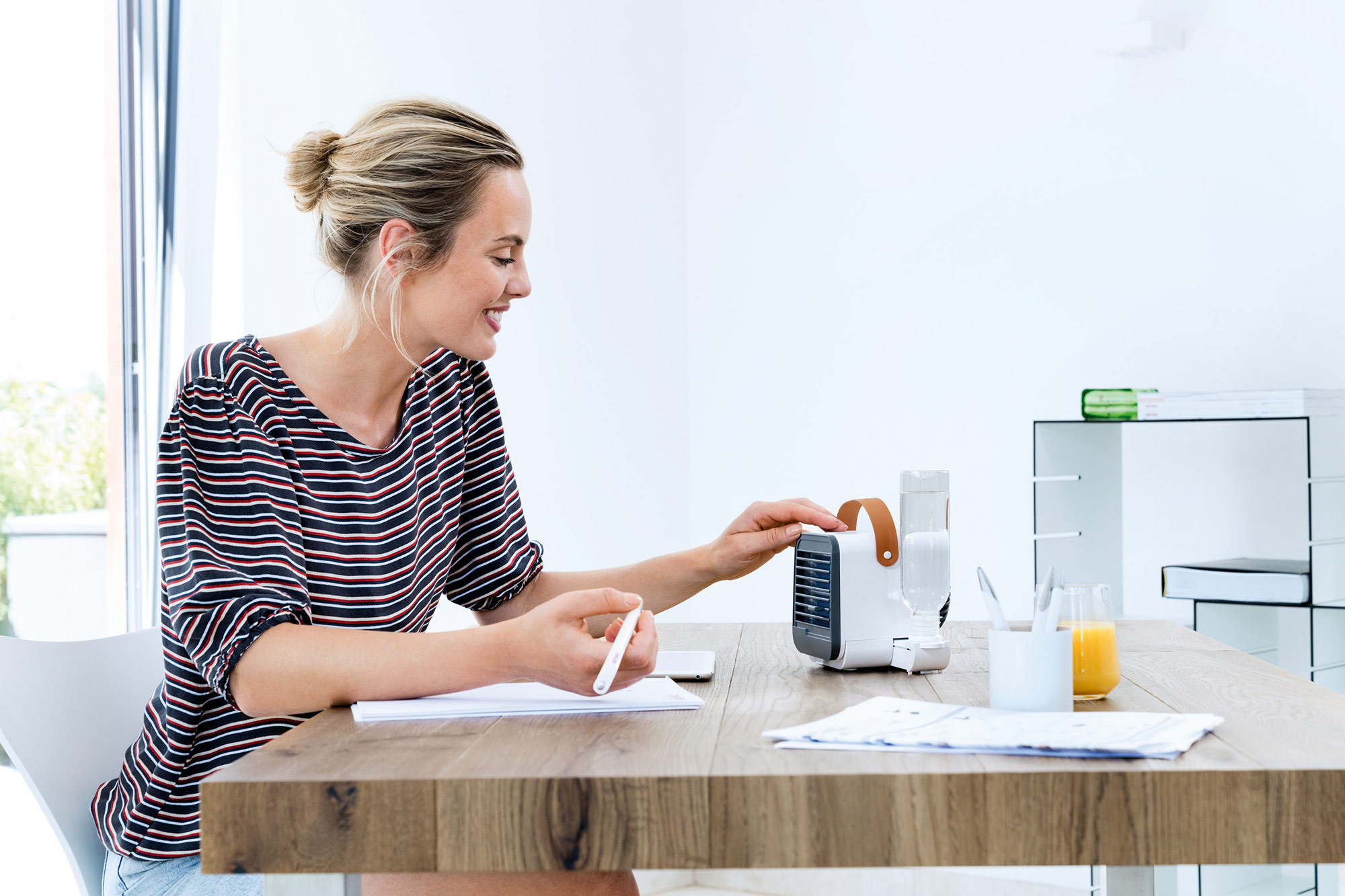 Der neue LV 50 Fresh Breeze Tischventilator/-kühler ist der perfekte Begleiter für den Sommer im Büro, im Homeoffice oder zu Hause beim Homeschooling der Kinder. Das kompakte und formschöne Produkt sorgt genau dort für Erfrischung, wo sie benötigt wird und steigert das Wohlbefinden an heißen Tagen.