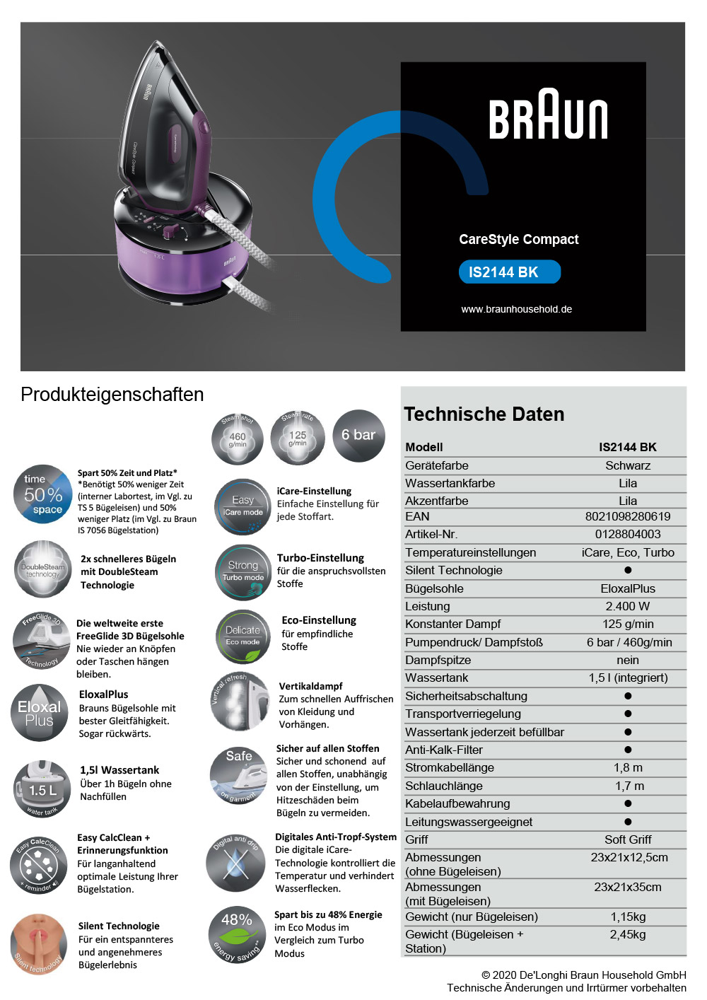 - Die CareStyle Compact Bügelstation ist mit einer unverbindlichen Preisempfehlung von 177,99 € ab April 2021 erhältlich.