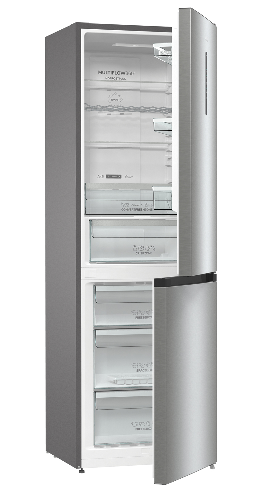 Mit der Advanced Kühl-Gefrierkombination NRK6192AXL4 ist die Lebensmittelaufbewahrung eine echte Freude. Das 185 cm hohe NoFrostPlus-Gerät im Edelstahl-Look bietet ausreichend Platz und vielfältige Lagermöglichkeiten. Mit seinem CrispZone-Schubfach ist es perfekt geeignet für die Aufbewahrung großer Mengen frischer, schnell verderblicher Produkte. Durch die niedrigere Temperatur und mithilfe des Feuchtereglers bleiben Obst und Gemüse über längere Zeit wie gerade geerntet. Die Convert FreshZone verwandelt sich von einer Fisch- und Fleischschublade in eine Obst- und Gemüseschublade – für weiteres problemloses Unterbringen frischer Lebensmittel. Alle weiteren Einkäufe können überall im Innenraum gelagert werden und das Sortieren nach Kältezonen entfällt. Dafür sorgen die Funktionen IonAir und MultiFlow 360°, die eine gleichmäßige Temperatur schaffen.