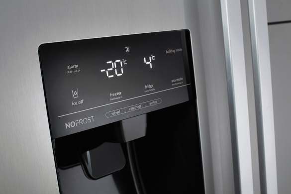 Ein wahres Raumwunder ist der Superior Side by Side NRS9182VX1. Mit seinem Netto-Nutzinhalt von 535 Litern (368 Liter Kühlen, 167 Liter Gefrieren) bietet er effizient gestalteten Platz für alle möglichen Lebensmittel und spart somit häufiges Einkaufen. Die FastFreeze-Funktion friert große Mengen bei -24 °C ein, um Mineralien in Lebensmitteln zu konservieren und ihre Qualität beizubehalten. Dabei arbeitet das Gerät mit einem Inverter-Kompressor, der leiser und langlebiger im Vergleich zu herkömmlichen Kompressoren ist. Die Oberfläche aus gebürstetem Edelstahl ist zeitlos und fügt sich in jede Küche ein. Mit einem eisgekühlten Getränk den Augenblick genießen: ob gekühltes Wasser, Crushed Ice oder Eiswürfel – nichts leichter als das. Dafür sorgt der eingebaute, Touch-gesteuerte IceMaker mit Festwasseranschluss.