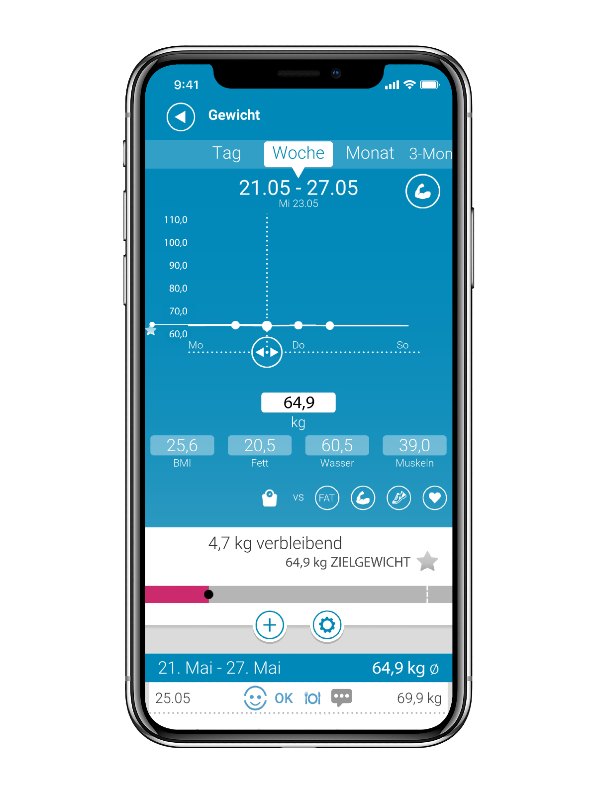 Die Wifi & Bluetooth Körperanalysewaage BS 600 connect ermittelt bei jeder Messung nicht nur das Gewicht, sondern auch die Körperwerte Körperfett, Körperwasser, Muskelanteil und Knochengewicht. Die Messung des Body-Mass-Index (BMI) und des individuellen Kalorienbedarfs (BMR) unterstützt den Anwender bei der Erreichung eines gesunden Körpergefühls und einer bewussten Ernährungsweise und dient als hilfreicher Indikator auf dem Weg zum persönlichen Idealgewicht.