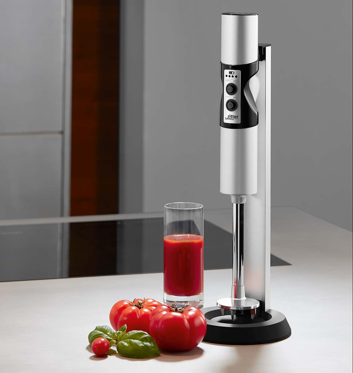 Mit dem kabellosen Stabmixer stilo 7 wird eine Symbiose von Zeitgeist und Elementen des Bauhaus-Stils angestrebt. Der Stabmixer verfügt über eine hohe Materialqualität und besteht überwiegend aus hochwertigem und stabilem Metall. Der Griff aus Kunststoff gewährleistet eine angenehme Handhabung. Das Mixwerk hat eine offene Form, um ein Verstopfen beim Zerkleinern von hartem Schneidgut zu verhindern.