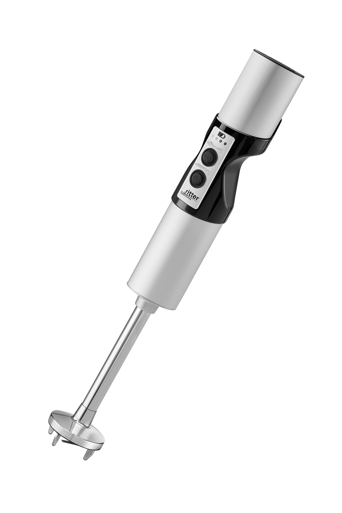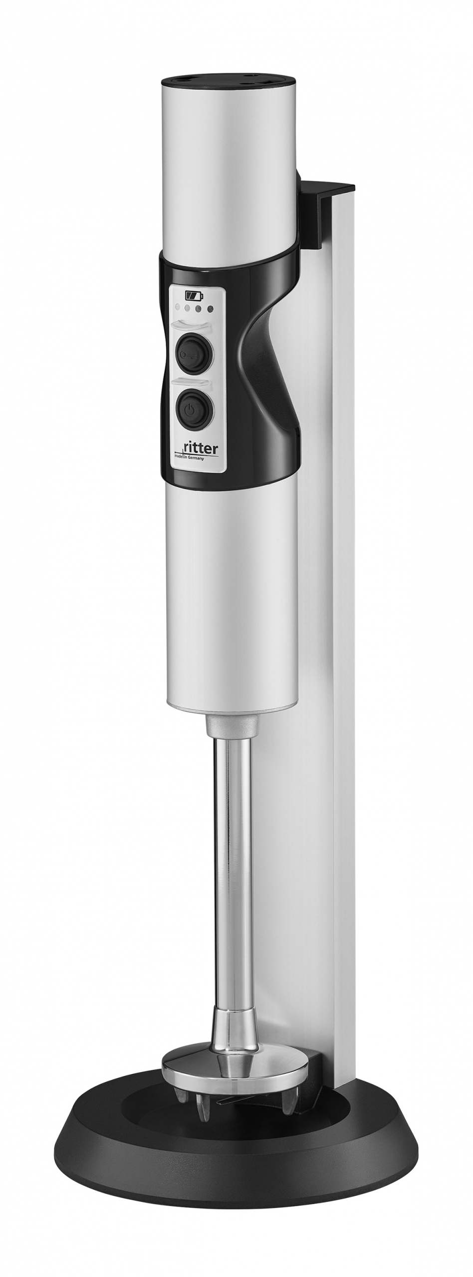 Über den Ladestand des Akkus informiert eine LED-Anzeige. Eine lange Lebensdauer des Akkus garantiert die intelligente Ladetechnik: Der Lithium-Ionen-Akku wird langsam aufgeladen, jedoch ohne zu überladen. Das Sicherheits-2-Finger-Einschaltsystem gewährt absolute Sicherheit, denn der Stabmixer kann nur beim Betätigen beider Tasten eingeschaltet werden und ist ansonsten inaktiv.