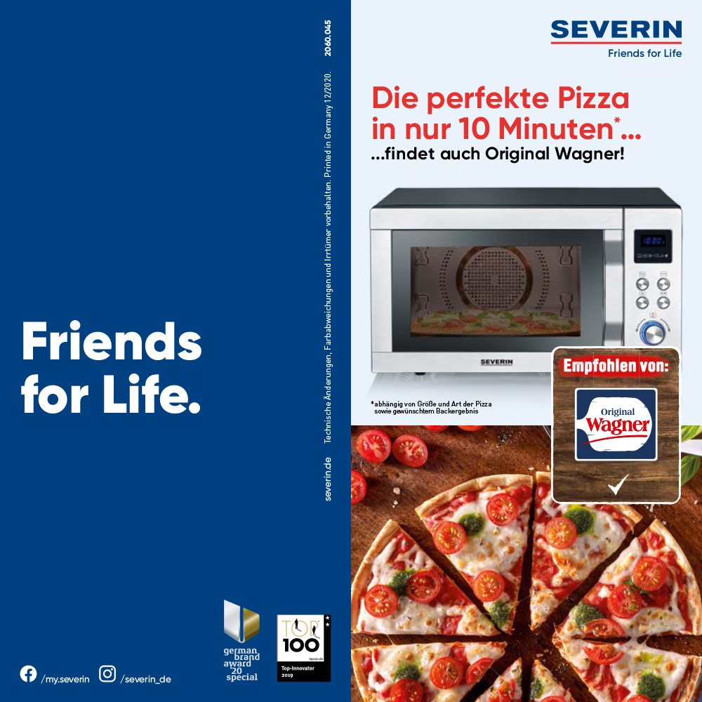 Dass SEVERIN selbst von seinem Produkt überzeugt ist, überrascht nicht. „Dass die Produkt-Experten von Original Wagner nach den umfangreichen Tests auch so begeistert sind, hat uns aber natürlich dennoch mit Stolz erfüllt!“, sagt Helene Tausch, die den Bereich Mikrowellen bei SEVERIN als Produktmanagerin betreut. „Die unkomplizierte und vor allem schnelle Art unsere Pizzen genauso zuzubereiten, wie wir uns das vorstellen, hat uns überzeugt. Begeistert hat uns die Qualität der aufgebackenen Pizza und die Tatsache, dass diese Art der Zubereitung zudem viel schneller als ein herkömmlicher Backofen ist. Wir freuen uns auf die Kooperation“, so Oliver Schoss, Head of Marketing bei Original Wagner.