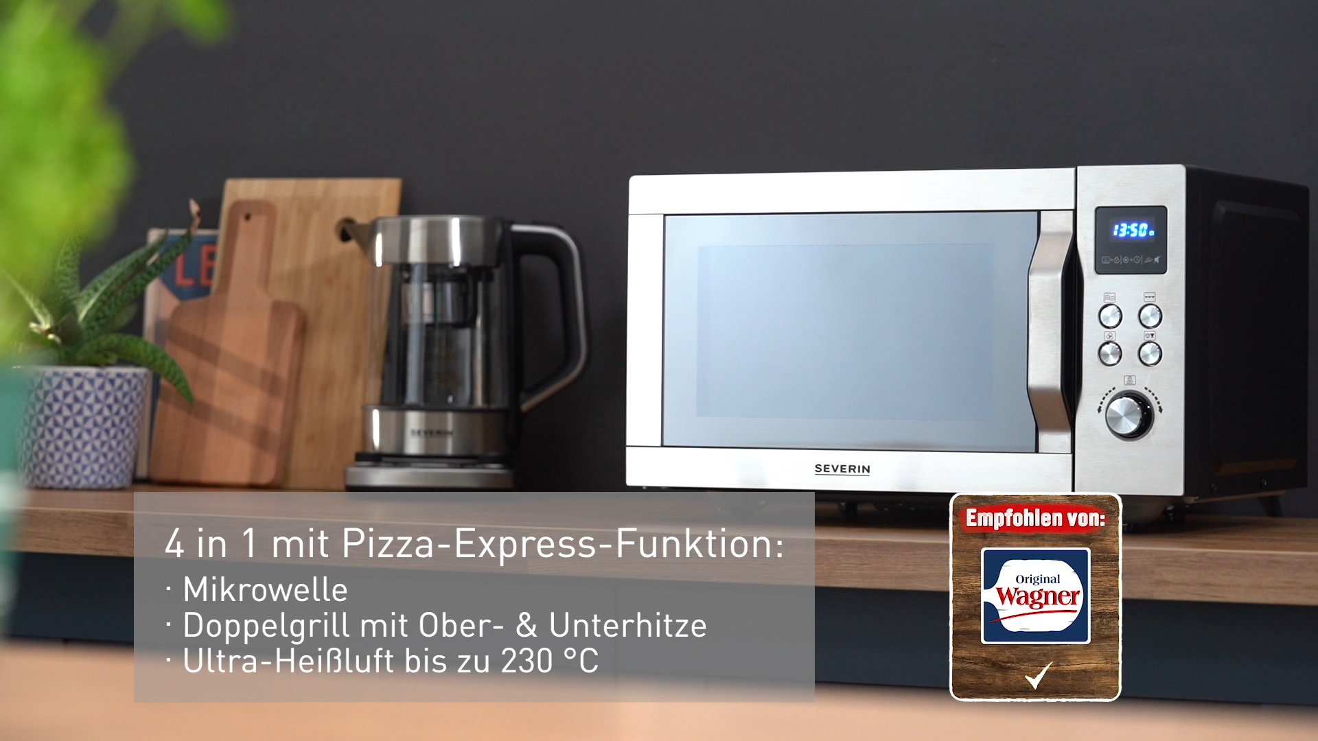 Die Pizza-Experten von Original Wagner sind sich einig: die Innovation „Pizza-Express-Funktion“ ist gelungen. Für die perfekte Pizza in nur 10 Minuten* bringt SEVERIN jetzt die 4-in-1 Pizza-Express-Mikrowelle auf den Markt.