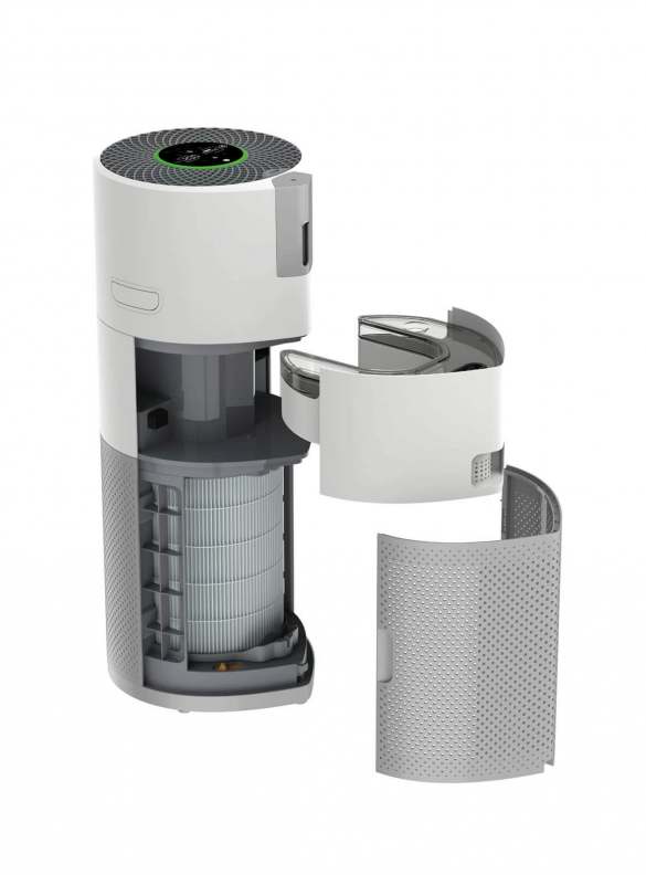 Ein dreistufiges Filtersystem (H-TRIFILTER), bestehend aus Primär-, HEPA (H13)- und Aktivkohlefilter, garantiert die Entfernung von Partikeln mit einer Größe von bis zu 0,3 μm mit einer Wirksamkeit von 99,97 %. Dank des 360°-Luftstroms wird die gereinigte Luft gleichmäßig in alle Richtungen verteilt – schnell und effizient. In nur 10 Minuten wird die Luft in einem Raum mit einer Größe von 20 m²** gereinigt.