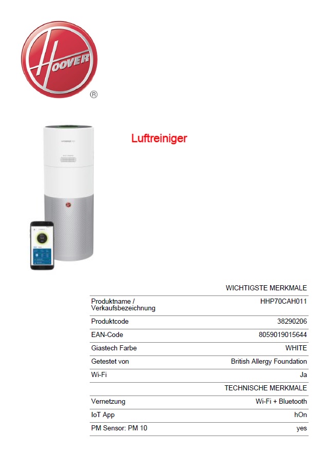 | H-PURIFIER 500 | HHP55CA011 | 679,00 € UVP |