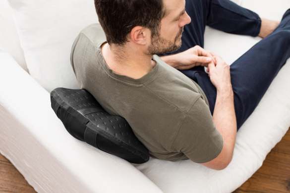Dank der flexiblen Kissenform ist es nicht nur perfekt geeignet für Verspannungen im Rückenbereich, sondern kann ebenso multifunktional im Schulter- und Nackenbereich, an den Oberschenkeln oder den Waden eingesetzt werden. Das kleine und handliche Design sowie zwei praktische Haltebänder auf der Rückseite des Kissens sorgen für eine einfache Handhabung während der Massage.