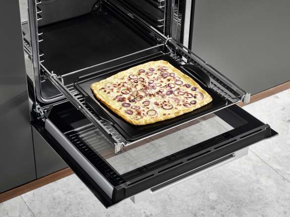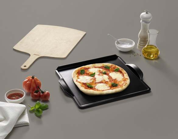 Der Miele Gourmet Back- und Pizzastein ist ein idealer Begleiter beim Backen und unter anderem auch für Pizza, Flammkuchen, Focaccia und Empanadas geeignet. Die Reinigung ist dank einer Speziallasur sehr leicht. Der Stein ist auch als Warmhalte- und Kühlplatte verwendbar.