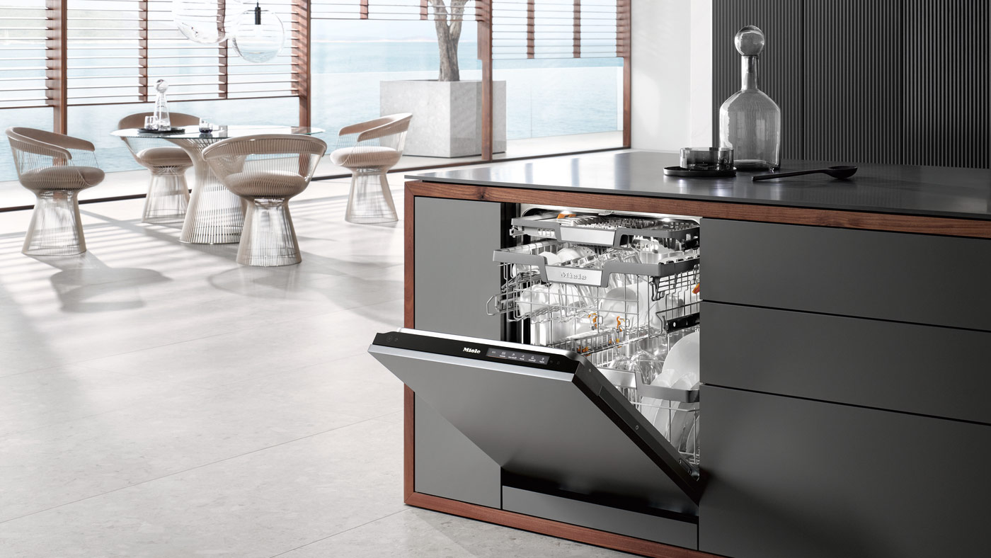 Miele hat außerdem die Sprüharme optimiert. Hinzu kommen ein hocheffizientes Filtersystem und ein neues Zuflusssystem. Eine zusätzliche Dämmung reduziert Wärmeverluste und damit wiederum die Energie, die zum Aufheizen des Wassers nötig ist. In Summe führen diese Detailverbesserungen dazu, dass deutlich weniger Strom und Wasser verbraucht werden (Wasserverbrauch im Programm ECO: 8,4 Liter).