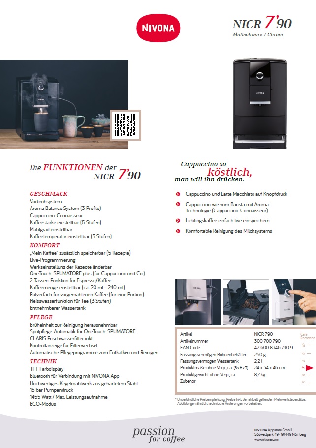 Neuheit 2021: Einstieg auf Knopfdruck – und Cappuccino! Unsere NICR 790 mag mit ihrer schwarzen Front nicht auffällig sein. Doch dafür werden Sie Gäste mit herausragendem Milchschaum und Kaffee begeistern. Dazu sorgen das Aroma Balance System und der Cappuccino Connaisseur für einmalige Genussmomente.