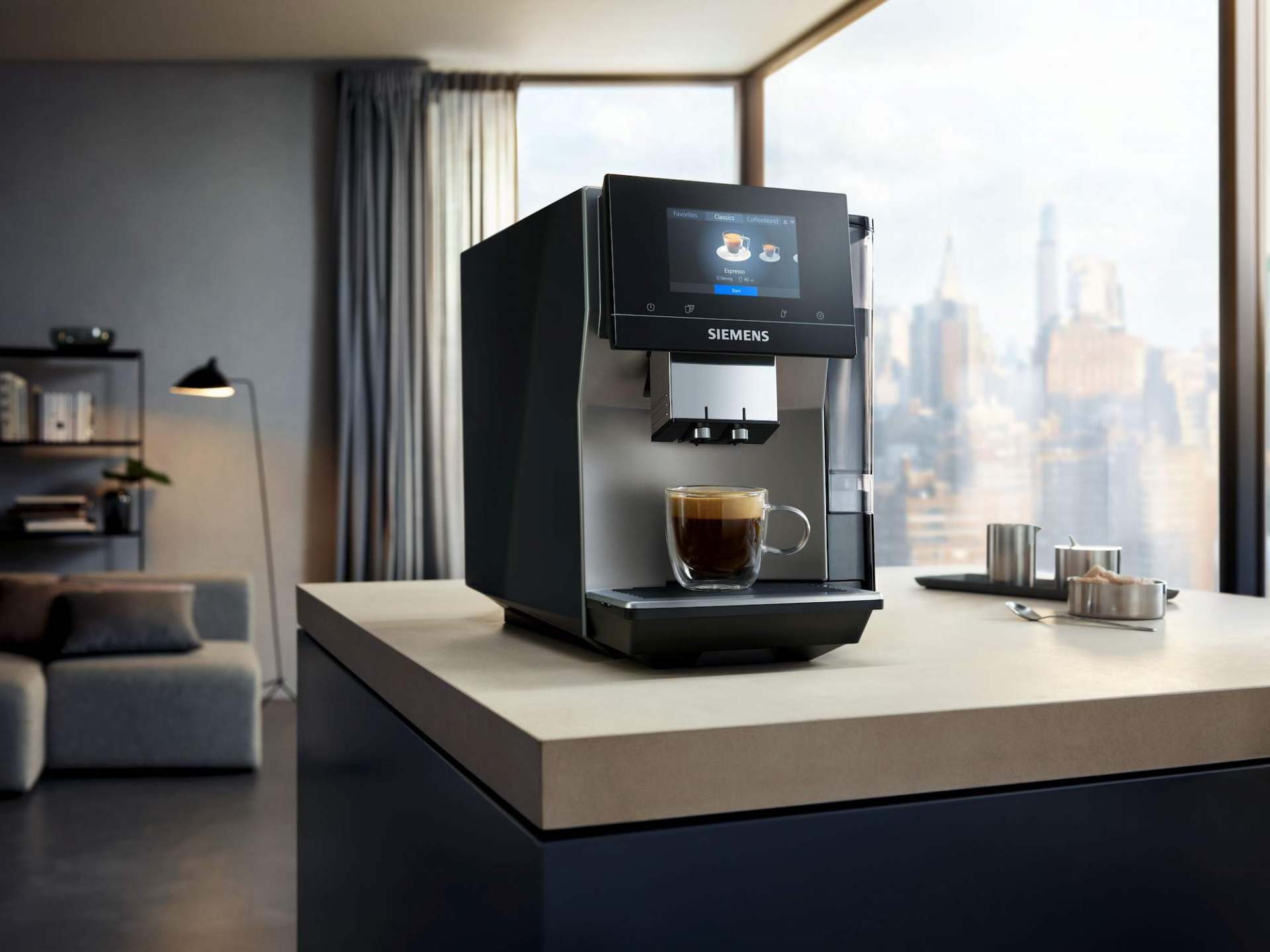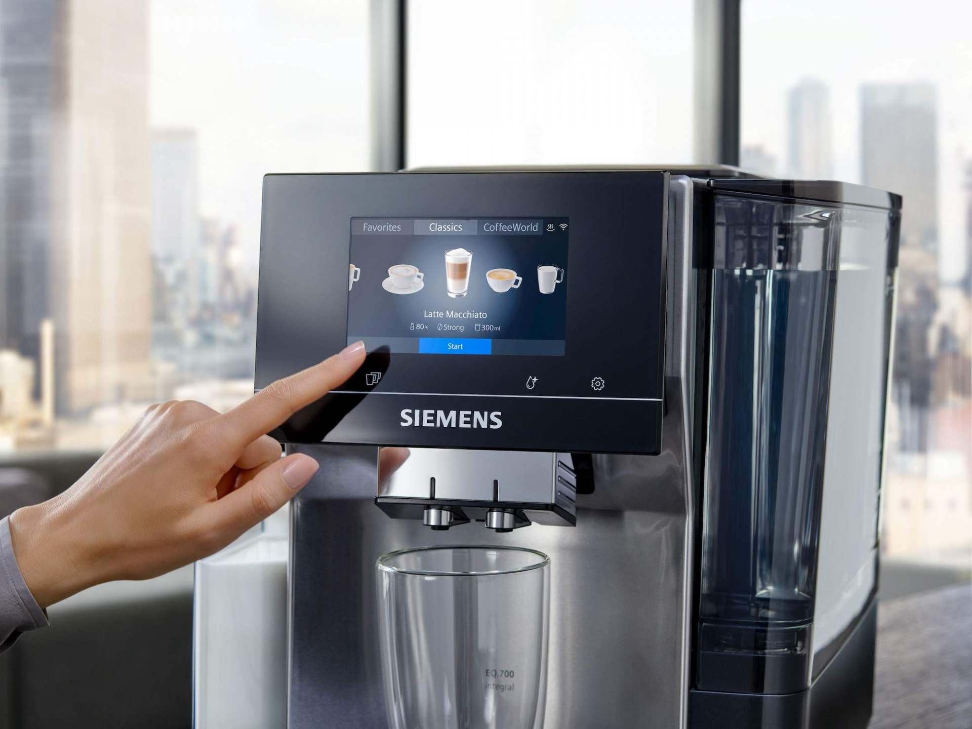 Die Kaffeevollautomaten von Siemens bieten perfekten Genuss für Kaffee-Connaisseurs. Mit dem EQ.700 wird die EQ-Serie nun um ein neues Modell ergänzt, das durch neueste Technologie und noch mehr Kaffeevielfalt überzeugt. Der EQ.700 bringt die weite Welt des Kaffees ins eigene Zuhause – ganz intuitiv über das Full-Touch-Display. Einfach Kaffee auswählen, von dem Gerät zubereiten lassen, zurücklehnen und genießen: So schön kann Genuss sein.