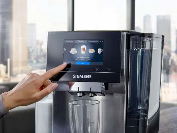 Technologisches Meisterwerk: Der neue Siemens Kaffeevollautomat ist mit einem farbigen 5“ Full-Touch-TFT-Display ausgestattet und damit besonders einfach und intuitiv zu bedienen. Eine Streichbewegung mit dem Finger über das Display offenbart die verschiedenen Auswahlmöglichkeiten – genau so, wie es bereits vom Smartphone bekannt und gelernt ist.
