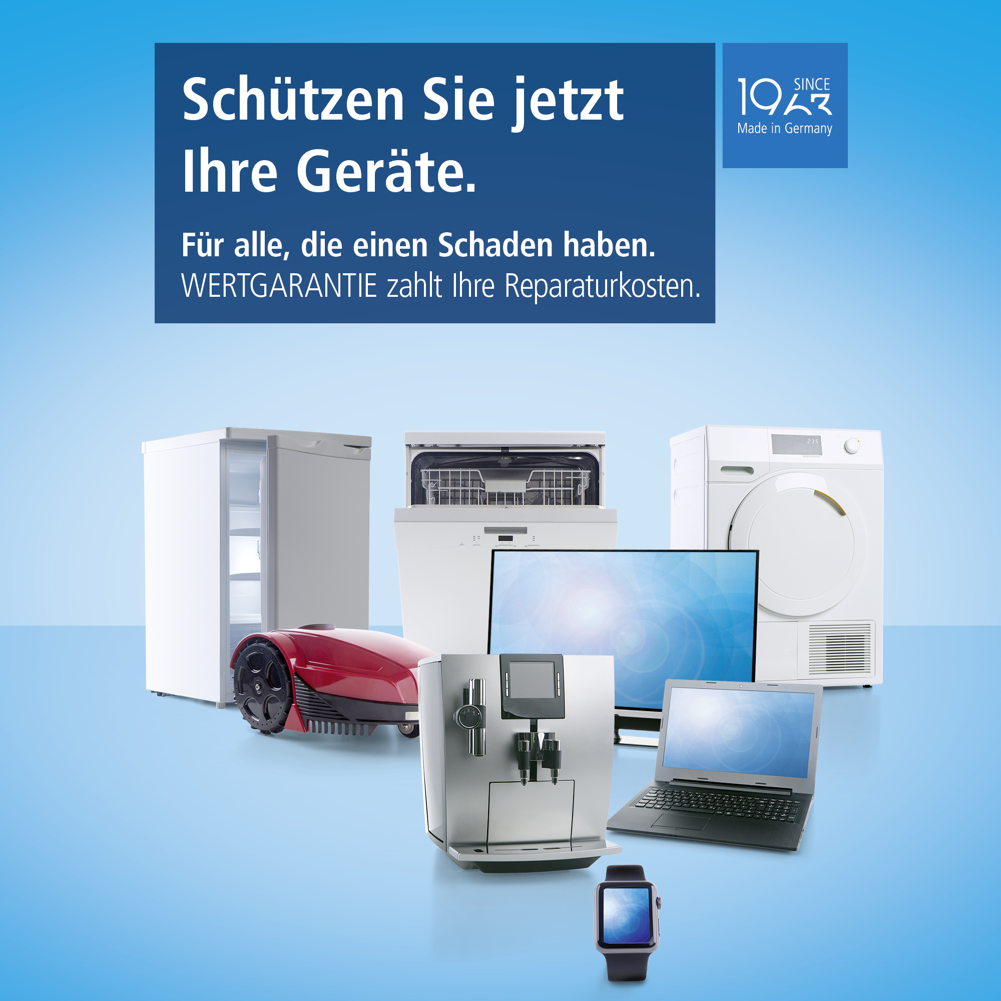 - Der Geräteschutz KOMFORT 3 bietet über den Basis-Schutz hinaus weitere Leistungen, z.B. vom ersten Tag an die volle Reparaturkosten-Übernahme bei Gerätedefekten, z. B. bei Fall-/Sturzschäden, unsachgemäßer Handhabung oder Wasser-/Feuchtigkeitsschäden sowie ein Ersatzgerät gleicher Art und Güte bei Totalschaden – für drei weitere Jahre. Zusätzlich beteiligt sich Wertgarantie mit bis zu 300 Euro, z. B. bei Raub/Einbruchdiebstahl oder Folgeschäden durch Gerätedefekt, wie verdorbenem Gefriergut etc.