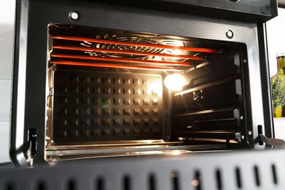 Mit einer Leistung von 1.500 Watt und Temperaturen zwischen 55°C und 220°C, in 5°C Schritten einstellbar, gelingt mit dem GASTROBACK® Design Ofen Air Fry & Pizza jedes Wunschgericht kinderleicht. 6 Edelstahl-Heizelemente (4x oben und 2x unten, getrennt steuer-bar) sorgen für eine schnelle Aufheizzeit und eine gleichmäßige Wärmeverteilung, sowie ein Umluftventilator mit 2 Leistungsstufen für eine Nutzung als Heißluftfritteuse oder Backofen.