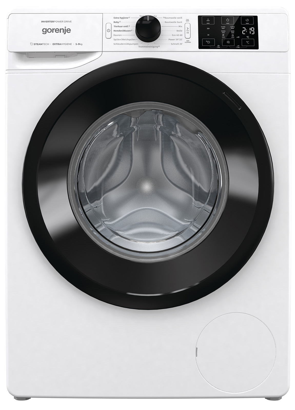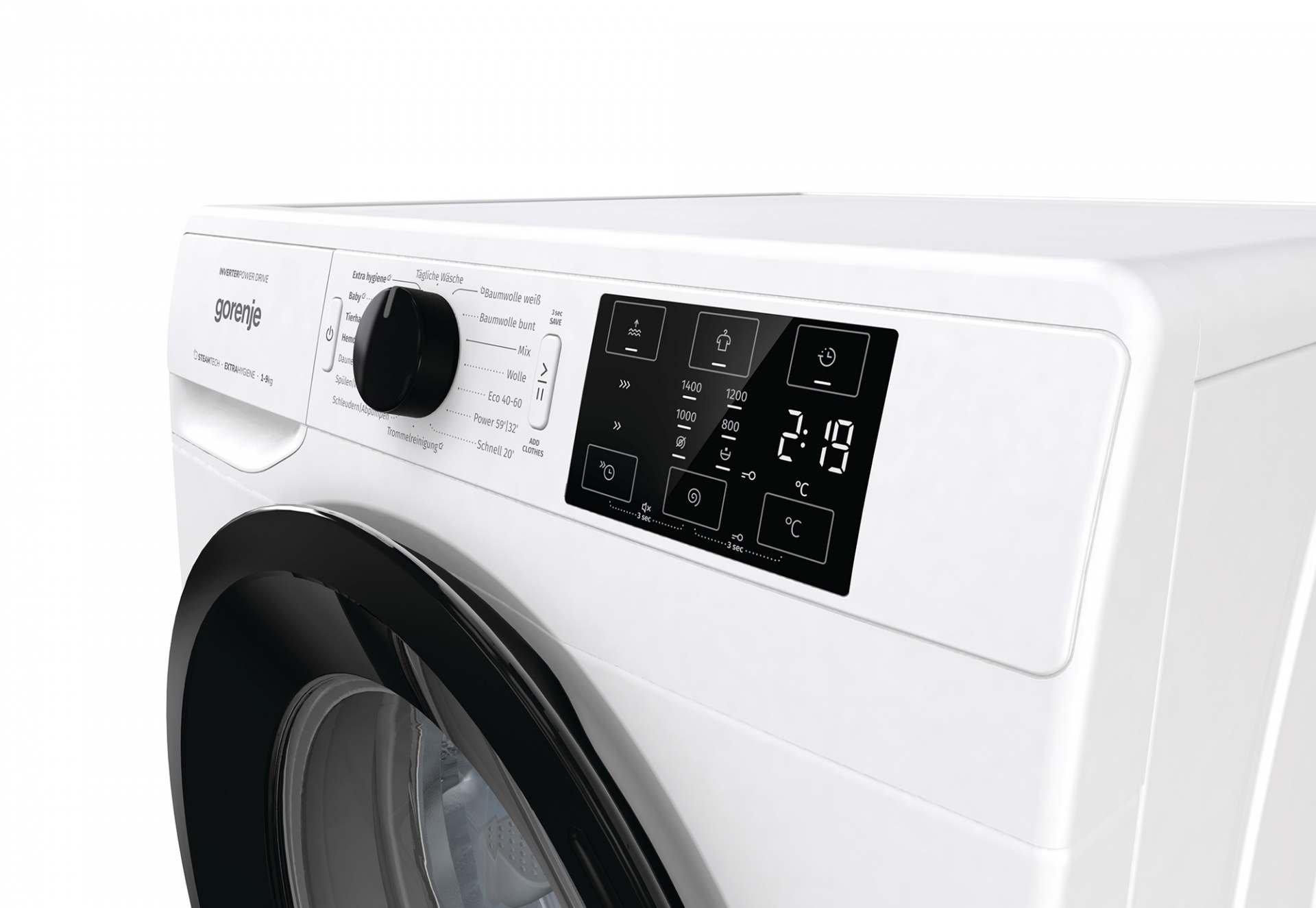 Die Essential-Waschmaschine WNEI94APS aus der WaveActive-Serie von Gorenje wäscht mit ihrer Schontrommel bis zu 9 Kilo Wäsche bei bis zu 1.400 U/Minute und überzeugt mit Energieeffizienzklasse A. Gleichzeitig werden durch ihr Wave-Design empfindliche Textilien geschont, Fasern geglättet und Knitterfalten minimiert. Ein ExtraHygiene-Programm entfernt mit Hilfe von Dampf- und Hochtemperaturwäsche bis zu 99,9 % an Bakterien und Allergenen aus der Wäsche. Die Trommelreinigung spült den Waschbottich und beseitigt ebenfalls Bakterien und weitere Rückstände. Das Bedienpanel verfügt über ein großes und modernes Display, das aus jedem Winkel gut ablesbar und intuitiv zu bedienen ist, um die 16 Programme einzustellen.