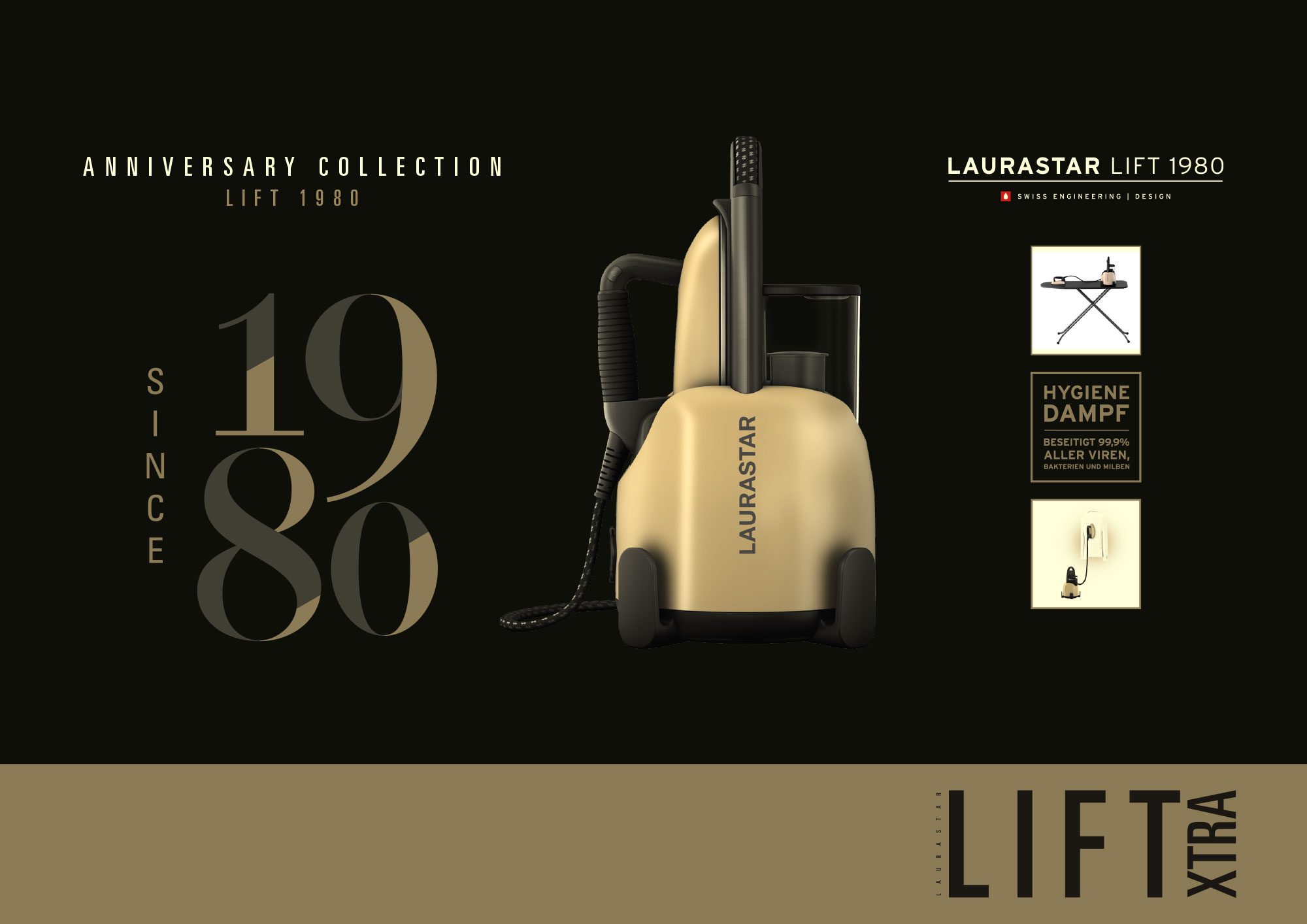 Die Stars der Marke, Laurastar Smart und Laurastar Lift, sind in Schwarz und Gold gekleidet und verkörpern die DNA von Laurastar: Exzellenz, Innovation, Design und Leistungskraft.