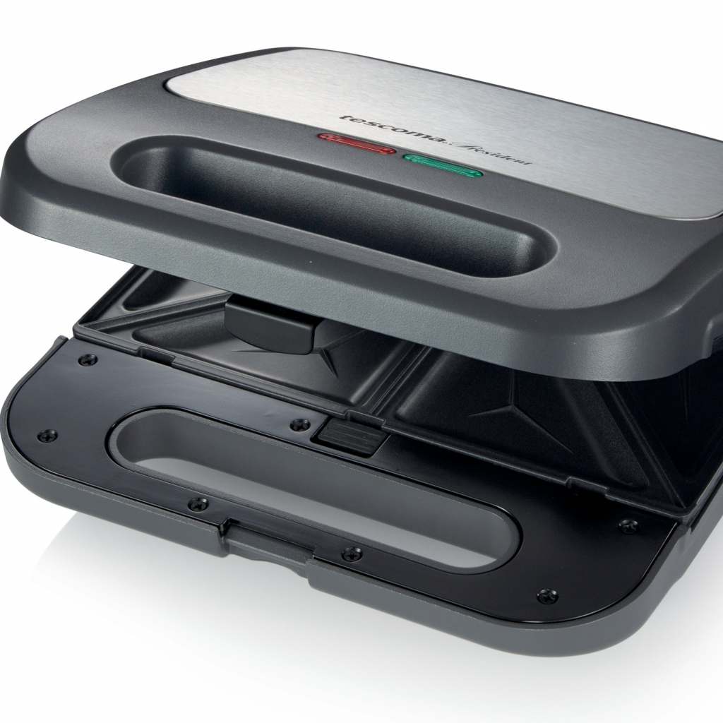 Der Sandwichmaker eignet sich hervorragend für die Zubereitung von überbackenen Sandwiches, Waffeln sowie zum Grillen von Panini, Gemüse, Fleisch, Fisch usw. Er hat 6 abnehmbare Wechselplatten zum Backen und Grillen und ist damit multifunktional einsetzbar. Er ist aus hochwertigem Metall, wärmebeständigem Kunststoff und rostfreiem Edelstahl hergestellt. Die Wechselplatten sind mit einer erstklassigen Antihaftbeschichtung versehen. Rezepte sind der Verpackung beigefügt.