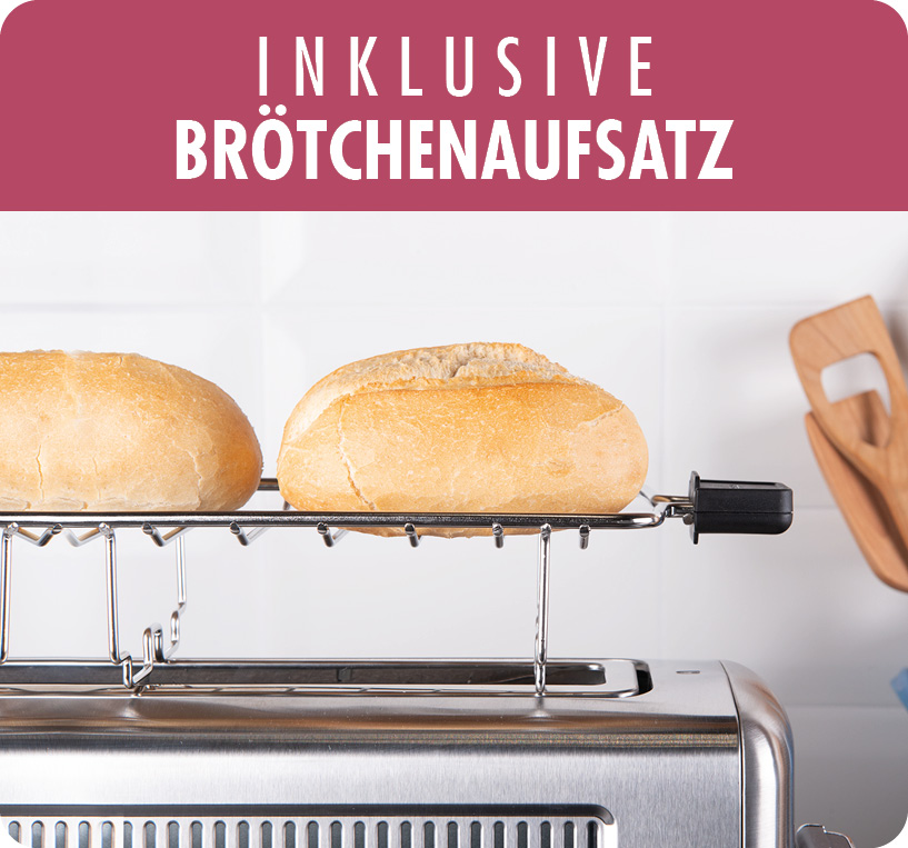 Mit dem langen Brötchenaufsatz lassen sich problemlos Brötchen, Croissants, Kuchen und sogar ganze Baguettes aufwärmen. Das sehr schmale Design mit nur 15 cm Breite, machen den Design Toasters Advanced 4S besonders für kleine Küchen, Single-Haushalte, Wohnmobil- oder auch Ferienhäuser interessant. Eine Hi-Lift Funktion zum einfachen Herausnehmen von kleinem Backwerk, ein integriertes Krümelfach und der Energiesparmodus runden die Vielzahl an praktischen Funktionen des GASTROBACK® Design Toasters Advanced 4S ab. Damit steht einem perfekten Frühstück nichts mehr im Wege!