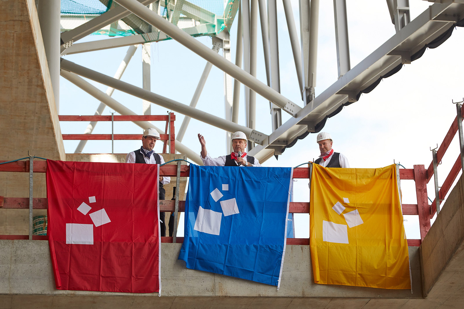 Das Richtfest nahm Uwe Behm, Geschäftsführer der Messe Frankfurt, zum Anlass, die Arbeit der Bauleute und der Arbeitsgemeinschaft Max Bögl, Ed. Züblin AG und Engie Deutschland nachdrücklich zu loben: „Wir sind sehr froh, dass wir eine tüchtige Arbeitsgemeinschaft aus leistungsfähigen Unternehmen mit begabten Ingenieuren und Fachkräften gewinnen konnten, die für die Messe Frankfurt diese neue Halle errichten.“