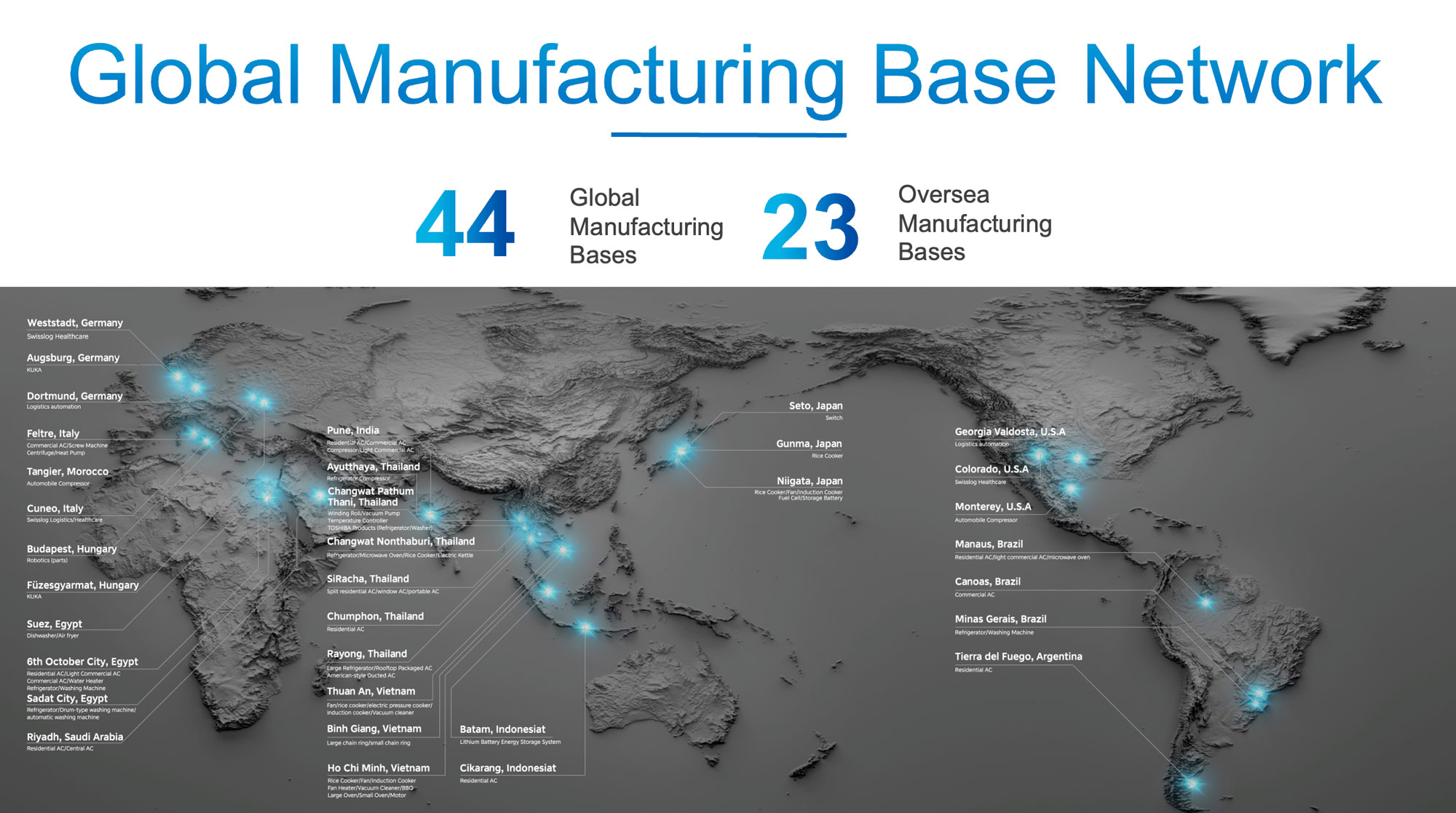Parallel zur Forschung hat Midea eine weitreichende Produktionsstruktur aufgebaut. Das Unternehmen ist in über 200 Ländern und Regionen vertreten und betreibt weltweit 43 große Fertigungsstätten. Diese tragen zur Skalierung der globalen Geschäftstätigkeit bei und verbessern die Effizienz in der Lieferkette.
