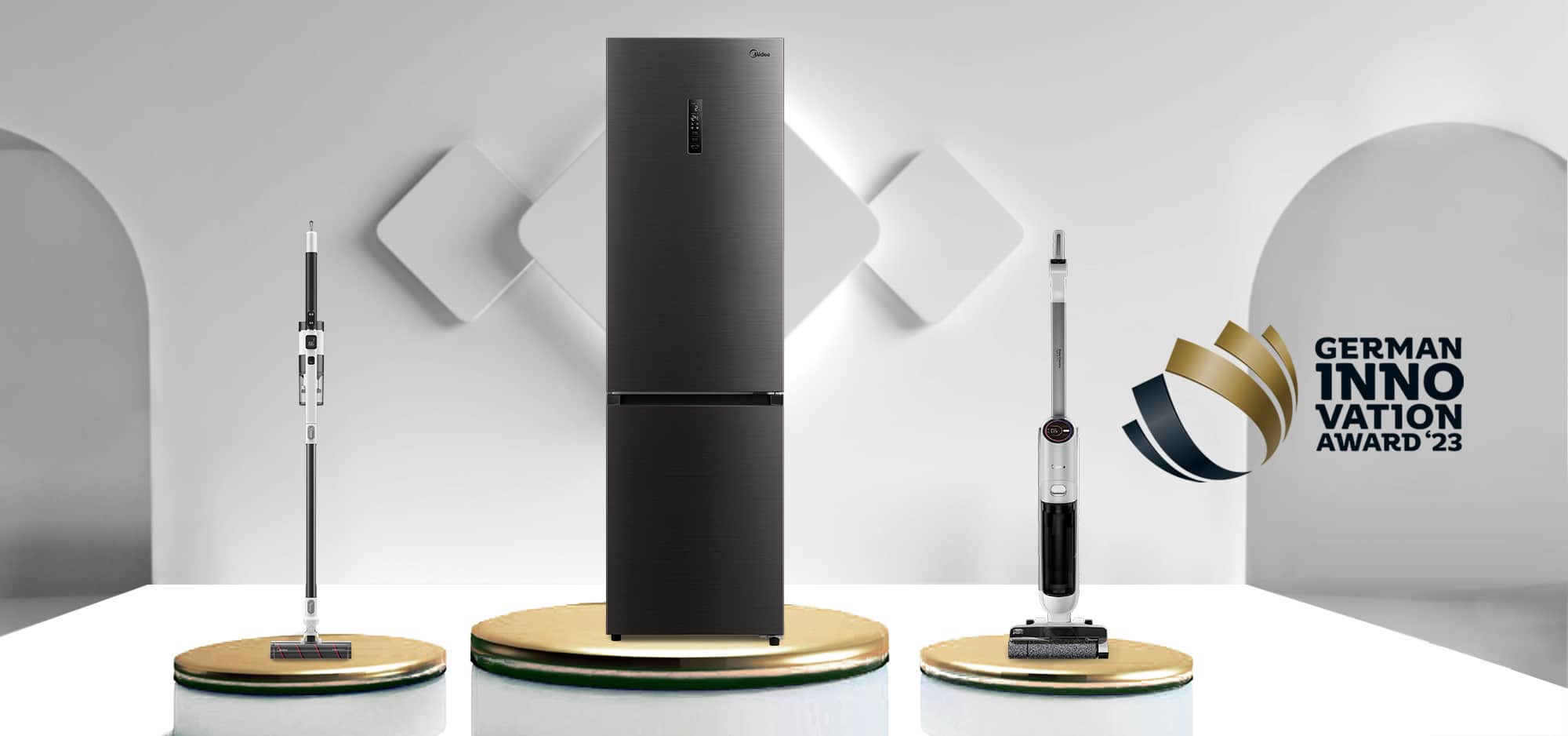 Die Kühl- /Gefrierkombi MDRB521MGA28O, der Akku-Sauger L10 und der Nass-Trockensauger X10 von Midea wurden mit dem German Innovation Award ausgezeichnet.