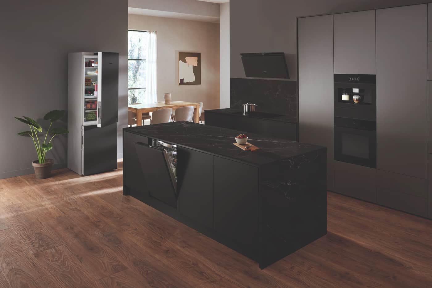 Ihr Erscheinungsbild ist geprägt von vollflächigen Glasfronten mit integrierten Displays. Die Geräte ermöglichen so eine konsequent grifflose Küche. „Für die Küchenplanung bietet ArtLine im Farbton Obsidianschwarz matt vielseitige Gestaltungsmöglichkeiten – harmonisch in ein dunkles Gesamtkonzept eingebunden, als Akzent in einer hellen Umgebung, in jedem Fall aber grifflos und stilprägend“, weiß Ina Laukötter, Vice President Category Marketing Business Unit Cooking bei Miele.