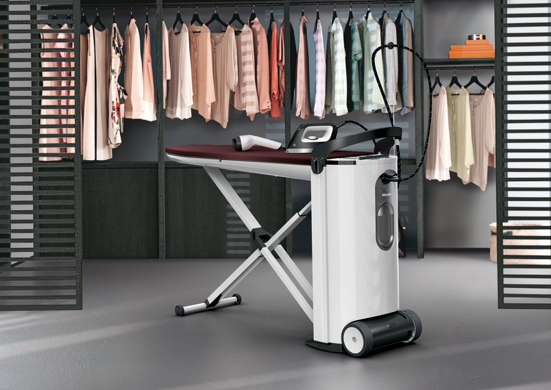 Die Miele Dampfbügelstation FashionMaster 4.0 verfügt unter anderem über ein größeres Ablagefach für das Bügeleisen und eine kratzfestere Lackierung in Weiß.