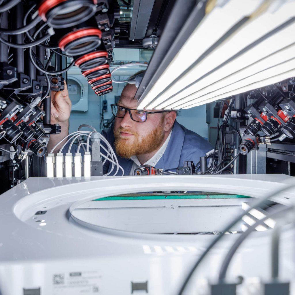 Ein Beispiel aus der Produktion ist die KI-gestützte Qualitätskontrolle von Waschmaschinenfronten: 32 Kameras erzeugen einen hochauflösenden Datensatz von der Frontpartie, die KI erkennt kleinste Fehler und bewertet detaillierter als das menschliche Auge. Dies schafft deutliche Vorteile in der Produktivität und bei der Effizienz.