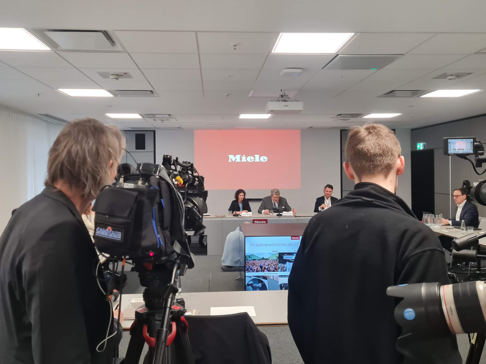 Das Unternehmen mit weltweit 23.500 Beschäftigten verbuchte im vergangenen Jahr einen Umsatz von 5,04 Mrd. EUR. Das ist nach 4,96 Mrd. EUR im Vorjahr ein Plus von rund 1,7%. Zu Gewinnen oder Verlusten äußert sich Miele zwar traditionell nicht. Doch Dr. Reinhard Zinkann, geschäftsführender Gesellschafter von Miele, ließ sich zumindest dieses entlocken: „Wir haben ein positives Ergebnis!“ Und auch das ist eine gute Botschaft: „Betriebsbedingte Kündigungen sind vom Tisch“, so Rebecca Steinhage, Geschäftsführerin Human Ressources.