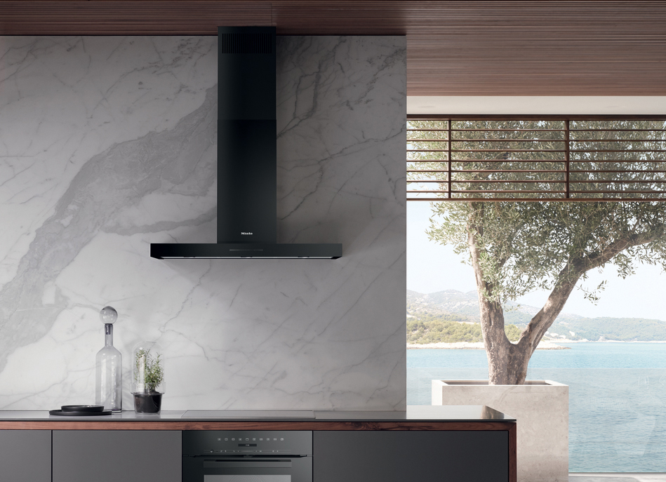 Die Miele Dunstabzugshaube Pur ist eine Wandhaube im klassischen T-Design. Die bereits bekannte Haube ist nun auch im Farbton Mattschwarz erhältlich (Modelle 60 cm/68 W, 90 cm/98 W).