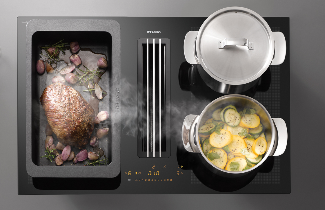 Das Miele Induktionskochfeld KMDA 7476 ist eine Kombination aus Induktionskochfeld und Dunstabzug.
